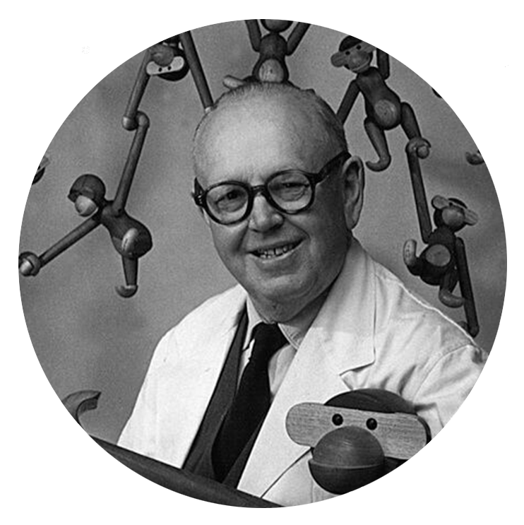 Med denna grundläggande filosofi i åtanke skapade Kay Bojesen sina älskade träleksaker som tilltalar oss alla, barn som vuxna. Med mer än 2000 olika produkter var Kay Bojesen en av Danmarks mest produktiva hantverkare under 1900-talet. Han är mest känd för sina lekfulla och glada apor, kungliga livvakter och andra träleksaker, men han har också gjort smycken, bestick, tekannor och silverbägare.