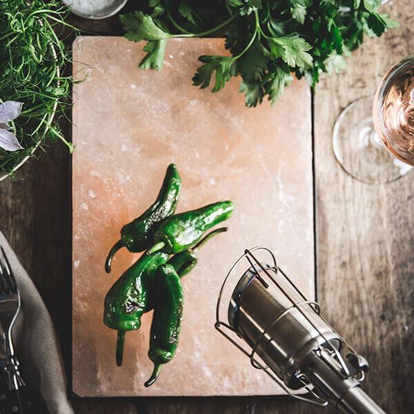 Saltsten härstammar från Himalayabergens hjärta och består av 100% naturligt kristallsalt. Den är inte bara läcker att servera maten på utan ger även dina rätter en perfekt "salt touch". Du kan använda den för tillagning av maten direkt på stenen eller för servering av olika kalla maträtter. Stenen går utmärkt att värma upp på grillen för att sedan vid matbordet tillaga små fisk- och kötträtter, vilket är ett trevligt alternativ om sällskapet gillar olika saker.