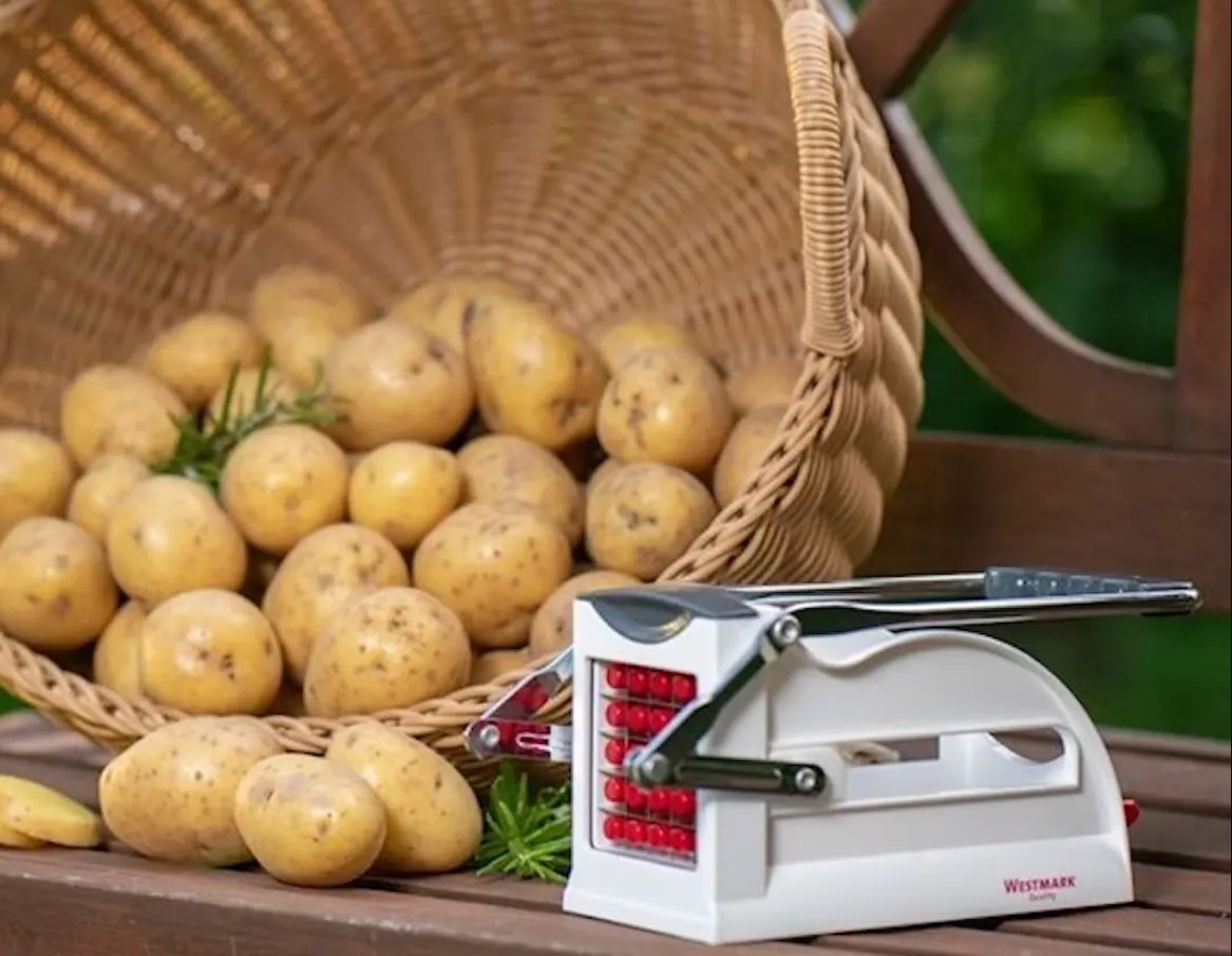En pommes frites skärare är ett smart köksredskap som gör det enkelt och smidigt att skapa hemlagade pommes frites. Med detta verktyg kan du snabbt och effektivt skära potatis i jämna, perfekta stavar, redo för fritering eller ugnsbakning. Perfekt för alla som älskar att njuta av krispiga, gyllene pommes frites i hemmets lugna vrå.
