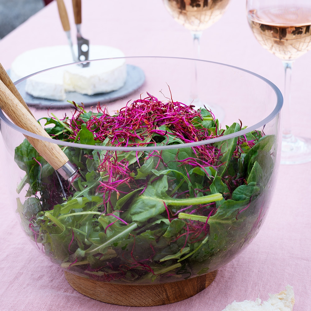 Servera salladen i en salladsskål som du tycker om. Med salladsbestick blir salladsserveringen komplett.