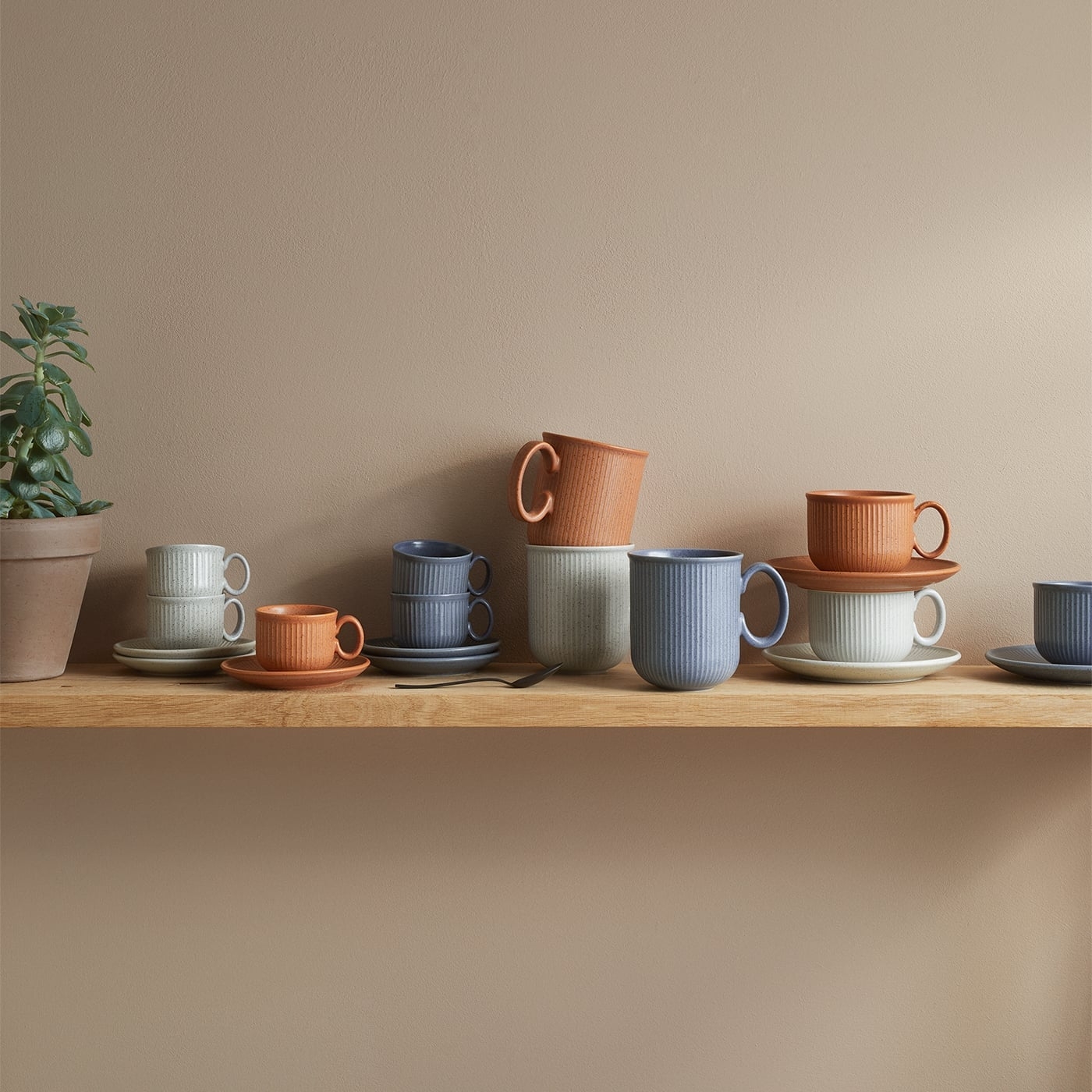 Upptäck den eleganta enkelheten hos Thomas Clay, en serie från Rosenthal som förenar tidlös design med hantverkskänsla. Med sin diskreta spräckliga yta och rustika charm påminner porslinet om naturlig lera. Här hittar du allt från stilrena koppar med fat och espressokoppar till funktionella skålar och assietter – perfekt för den moderna dukningen.