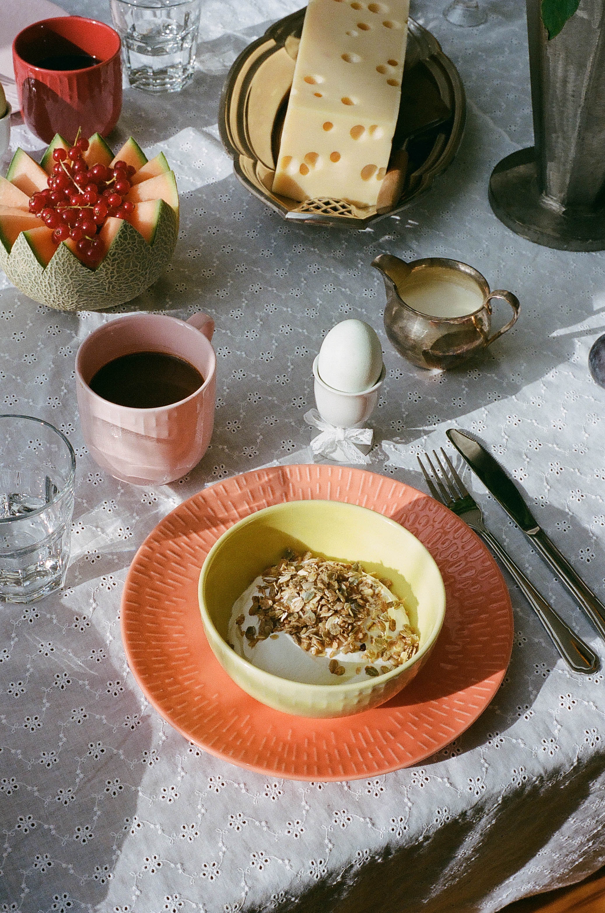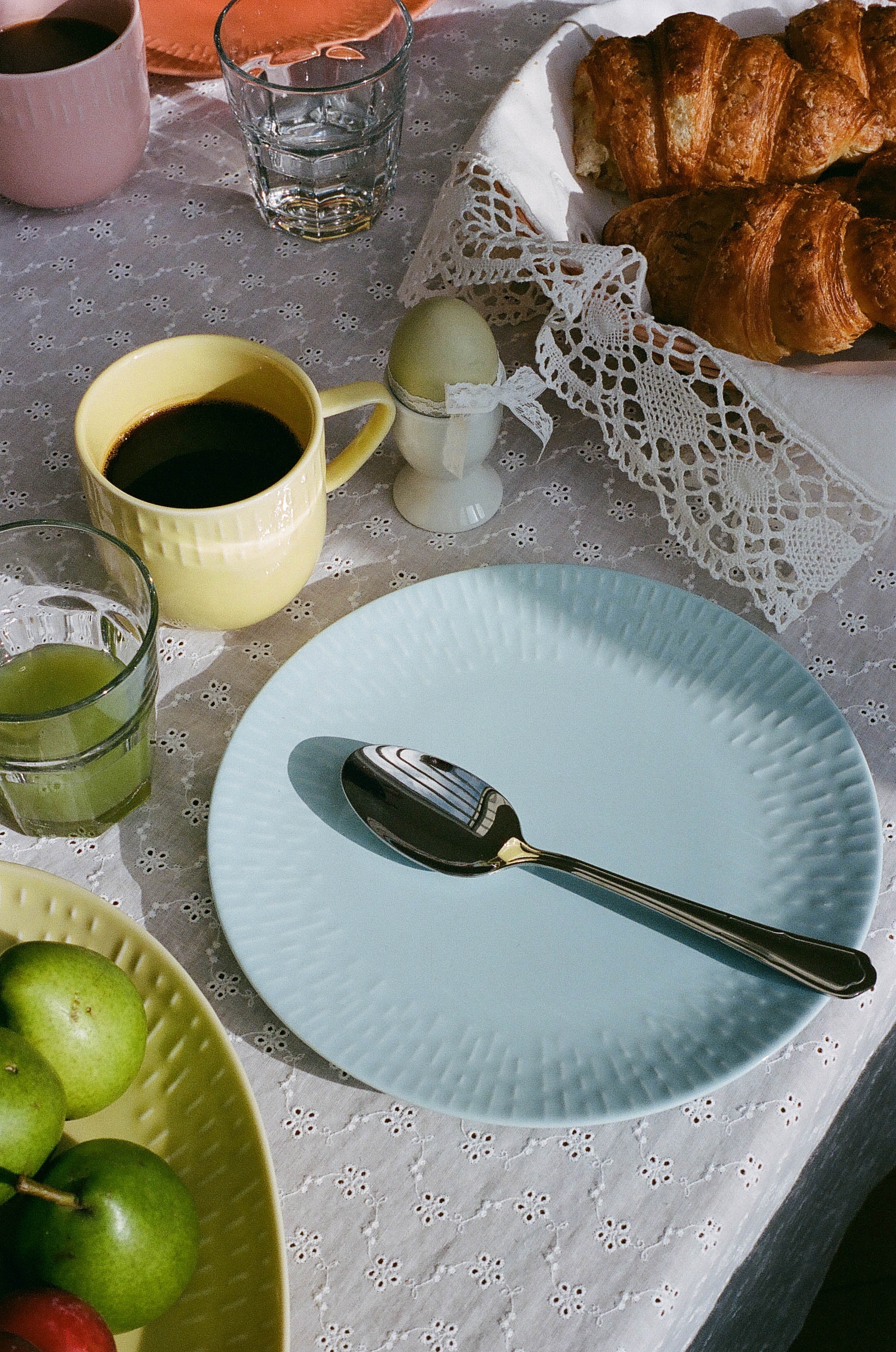Bjud in till brunch i vårens färger! Lek med färgkombinationen av aprikos, citron, aqua, pistage och chili för att skapa en dukning som andas ljus och glädje.