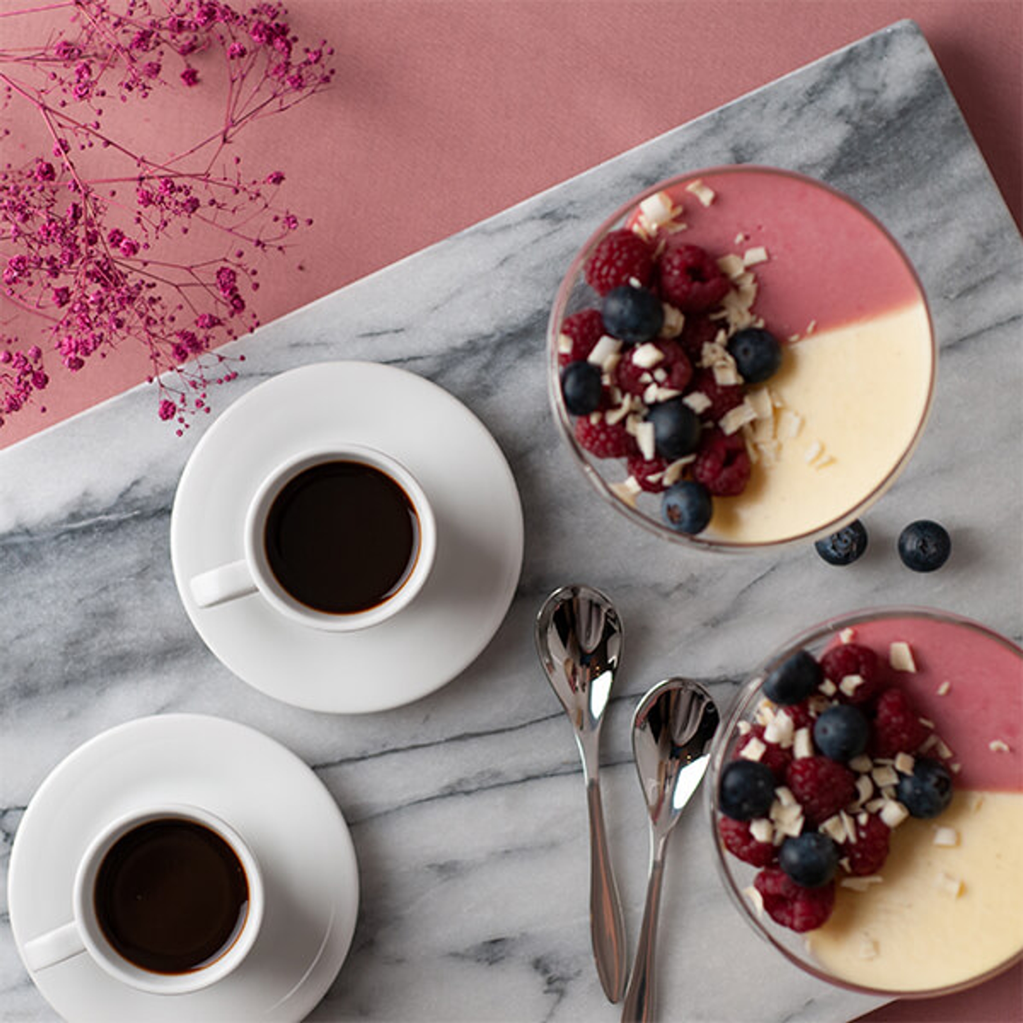 10. Fördela pannacottan i de halvt fyllda glasen och ställ i kylen att stelna, ca 4 timmar.