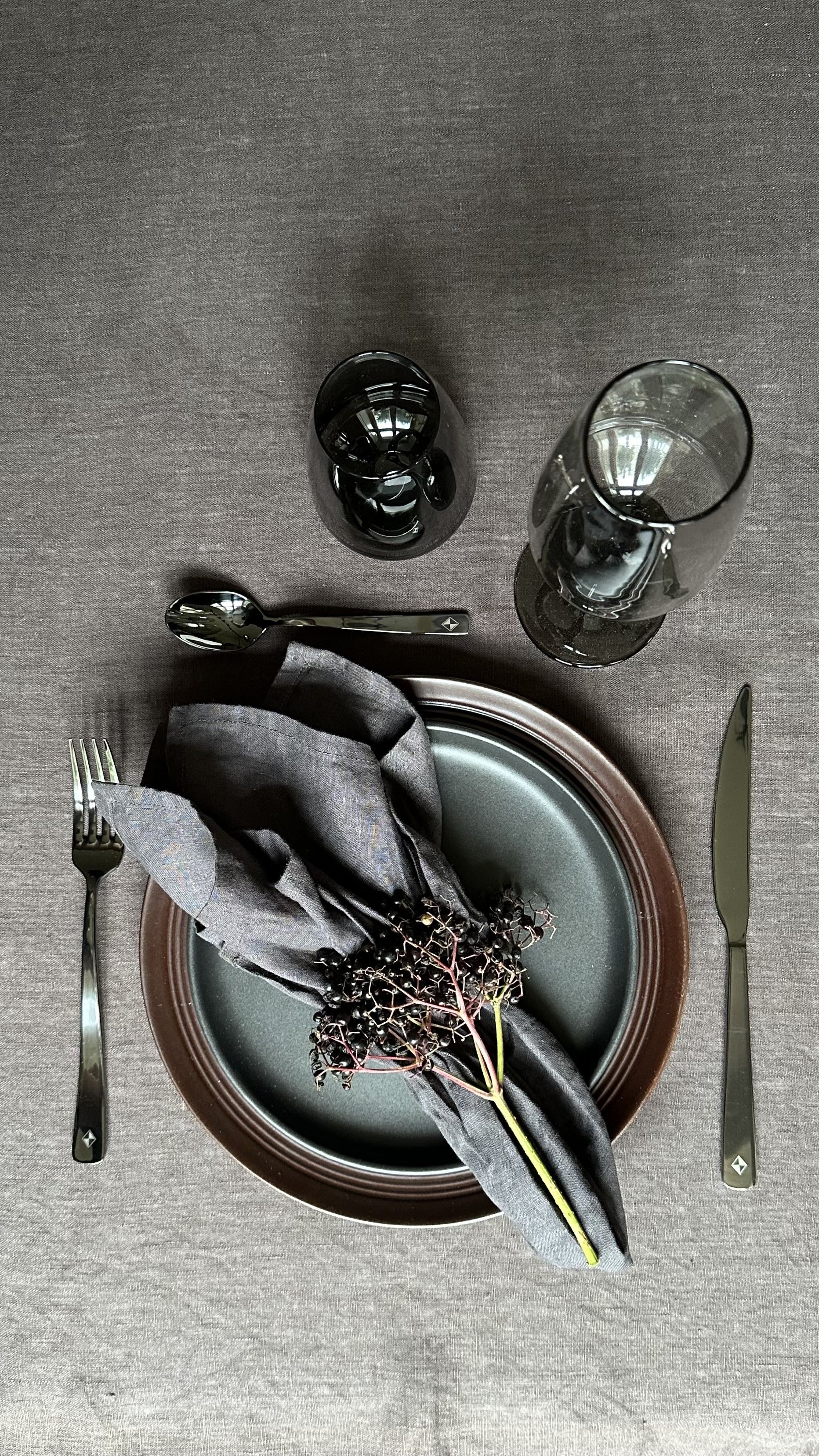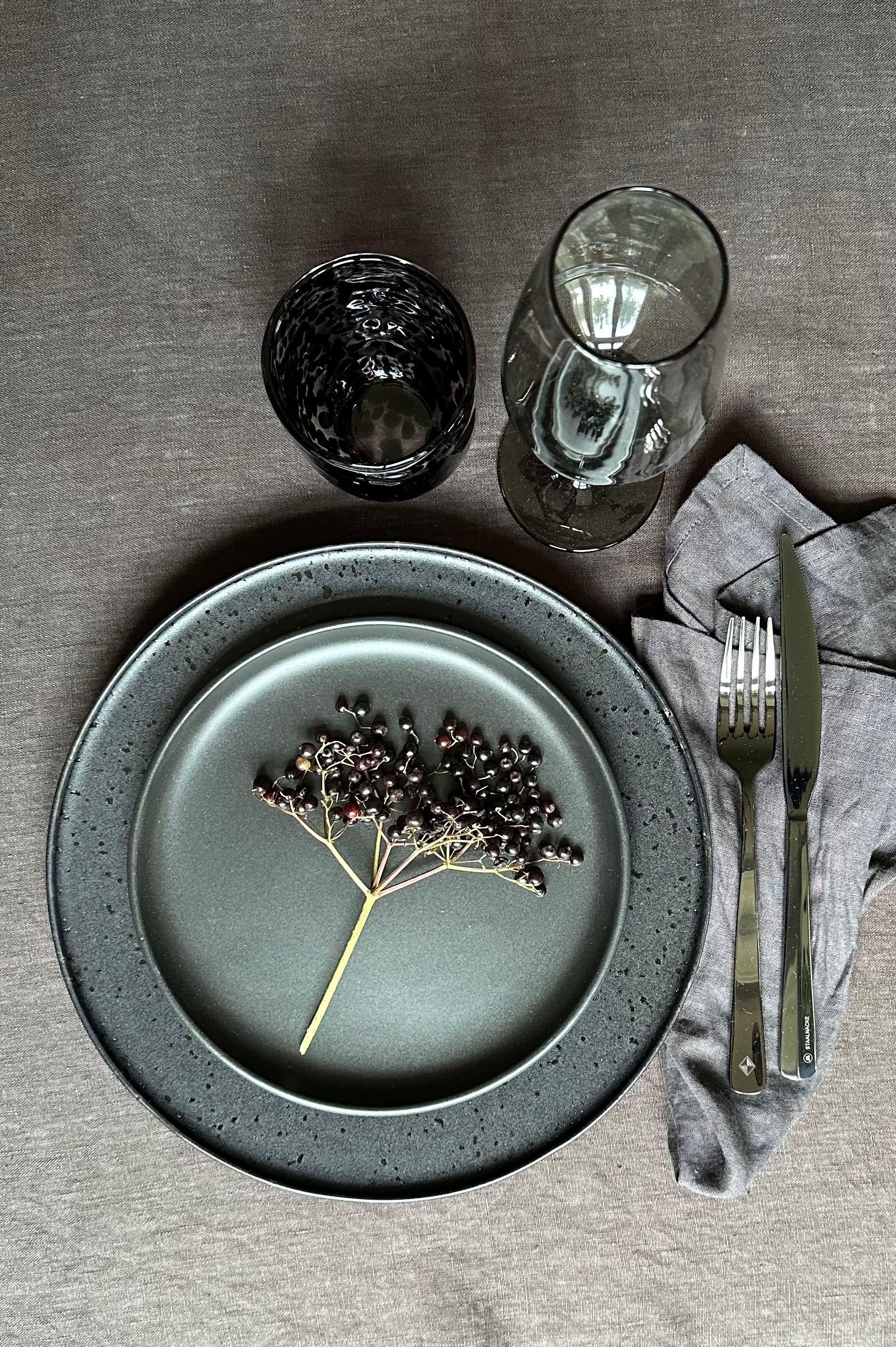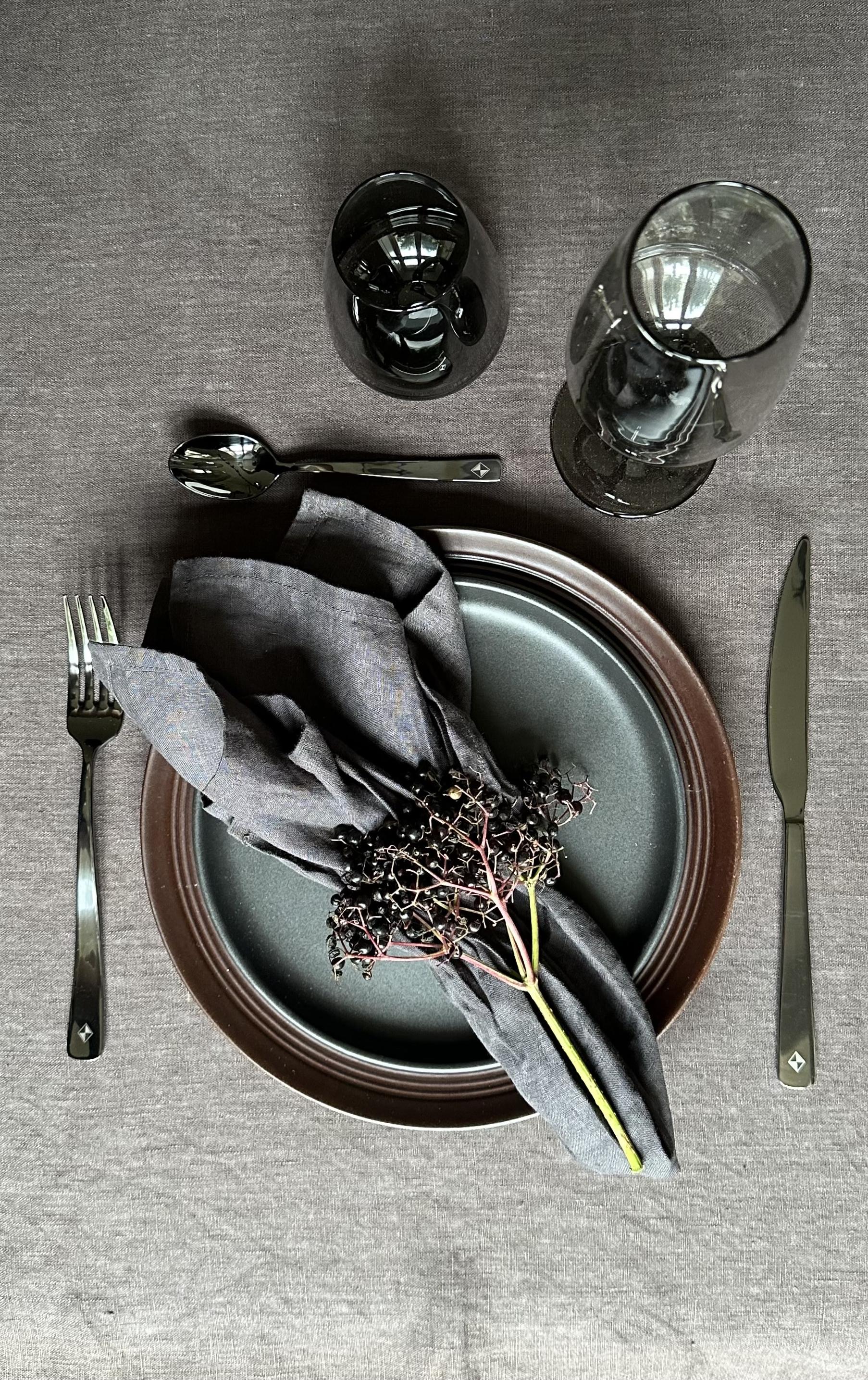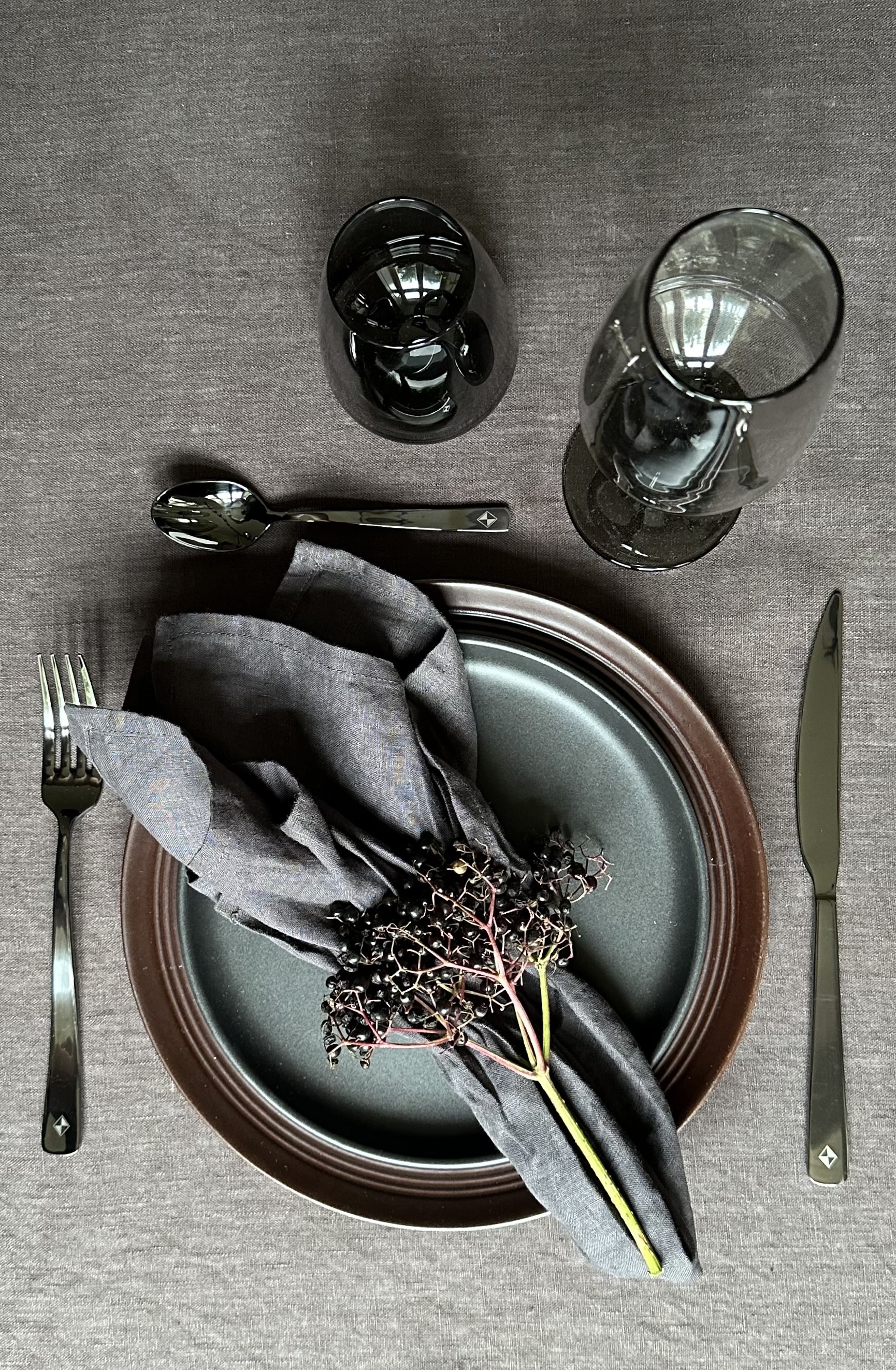 2. Arbeta med olika nyanser av svart - det vill säga arbeta med de mörkaste nyanserna av mörkgrått som går mot svart. Det gör att din dukning får en annan typ av djup och inte känns så endimensionellt och slätstruket.