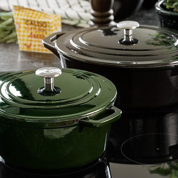 Stenfors gjutjärnsgryta från Anders Petter är tillverkad i emaljerat gjutjärn och den gröna färgen är en nyhet hos oss. Grytan har en jämn värmefördelning som bevarar värmen ända upp till kanten, perfekt för t.ex. risotto och mustiga grytor. Här nedan hittar ni receptet på Anna & Jasminas smarriga risotto.