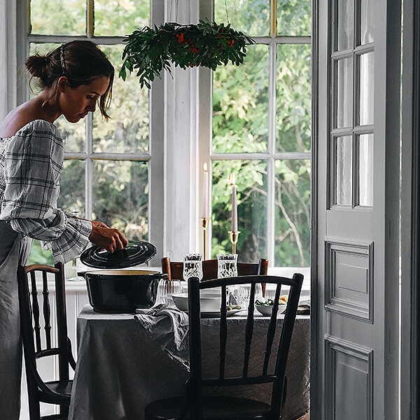 När höstmörkret börjar falla drar vi oss gärna in i värmen, samlar familj och vänner, tar hand om årets skörd och unnar oss gott medan tända ljus knastrar vackert i bakgrunden. Puttrande grytor, äppelpajer och kanske ett vinglas eller två får gärna pryda våra vackert dukade bord. Den här tiden på året är hållbara produkter viktigare än någonsin - långkok i robusta grytor, smörstekta mackor i lättgjutjärnspannan och redskap som ger matlagningen en hjälpande hand under flera härliga middagar! Bloggarna Jasmina Bylund (läs blogg här) och Anna Kubels (läs blogg här) delar här med sig av härliga recept och en vacker dukning!