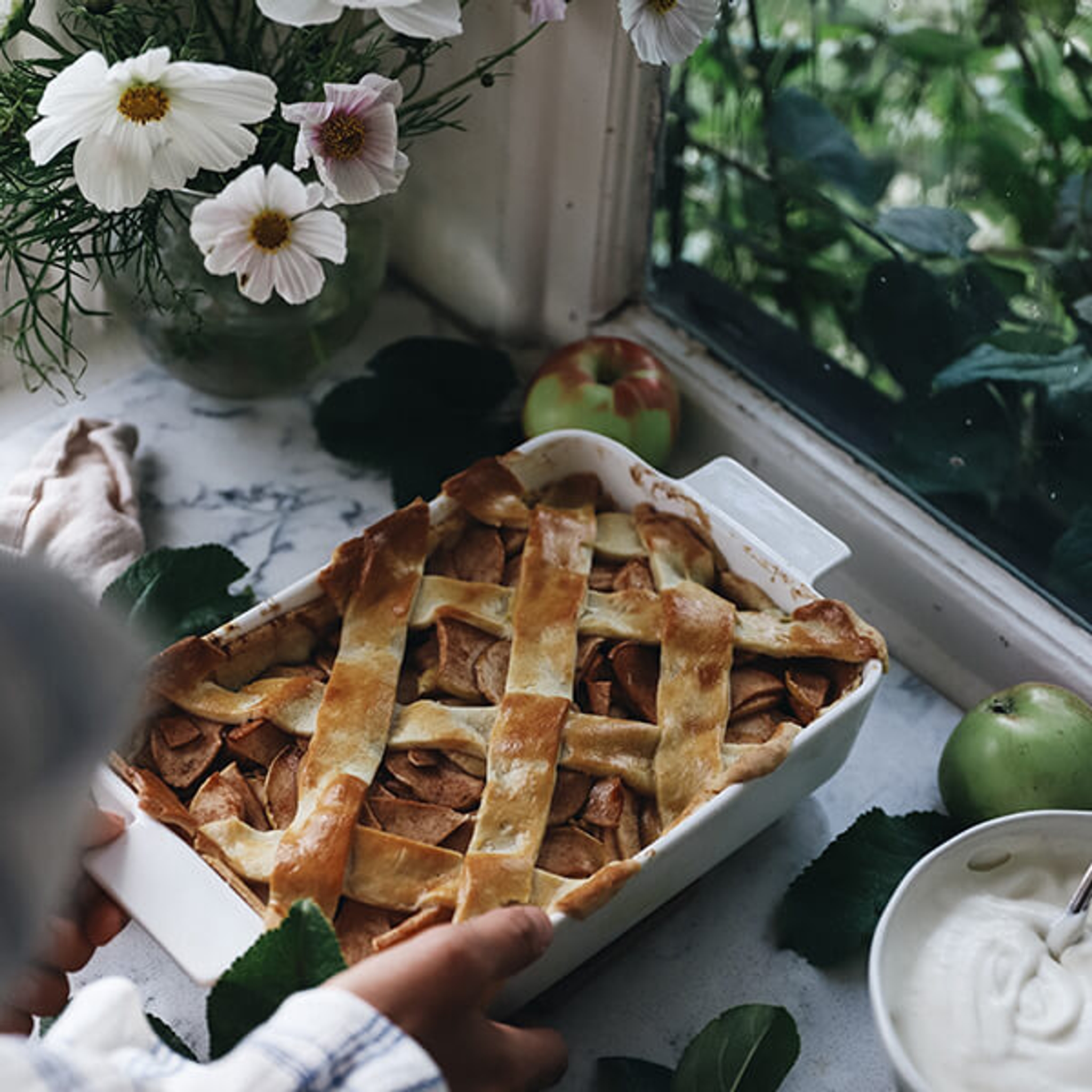 Det finns väl inget som slår en frasig äppelpaj med god vaniljsås? Formen kommer från Anders Petter och gör sig lika bra till äppelpajen som till lasagnen. Visste du att Stenfors ugnsfasta form i måtten 37,5x22 är speciellt framtagen för att tre hela lasagneplattor i rad ska få plats? No more brutna lasagneplattor i köket! Här nedan hittar du receptet på Anna & Jasminas vackra äppelpaj.