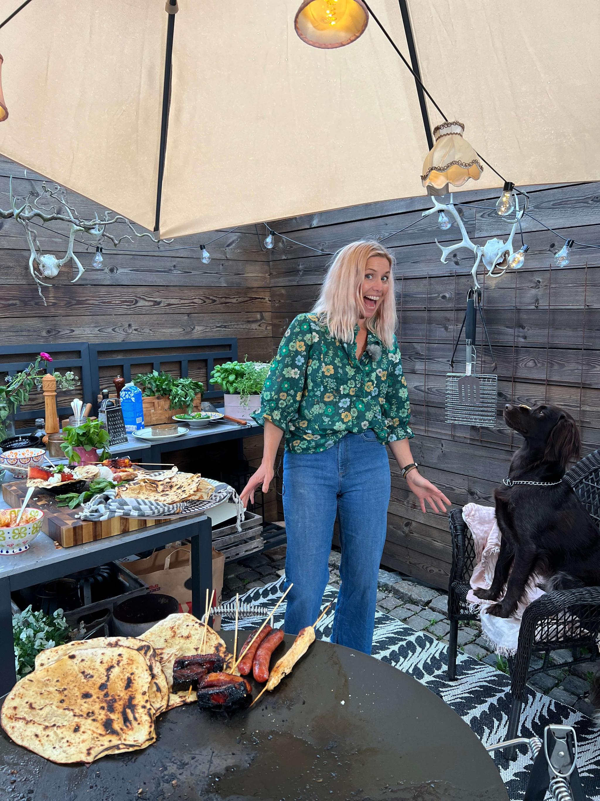 Bland annat grillar hon vattenmelon och ananas som hon sedan serverar med lompe. Vad är då lompe? Jo det är ett norskt potatisbröd som du också bränner av lite enkelt på stekhällen. Till alla gottigheter serverar hon en fräsch yoghurt med pimento och pecorino. Receptet hittar ni här!