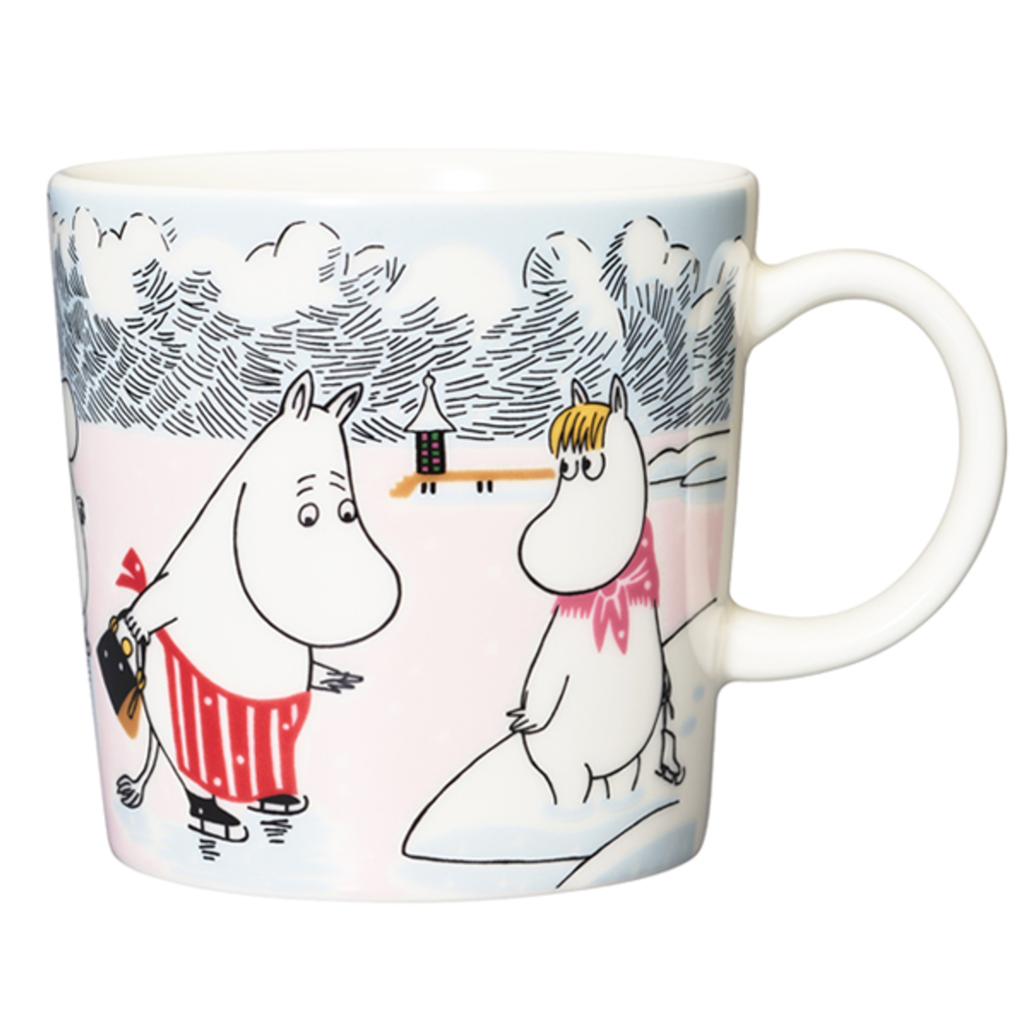 Den ena sidan av kollektionen Vinterns under visar Mumintrollet, Muminpappan, Muminmamman och Snorkfrökens skakiga försök att åka skridskor. På den andra sidan av porslinet ser vi Mymlan som beundrande betraktar herr Brisk när han försöker övertyga henne om de positiva hälsoeffekterna av vinterbad.