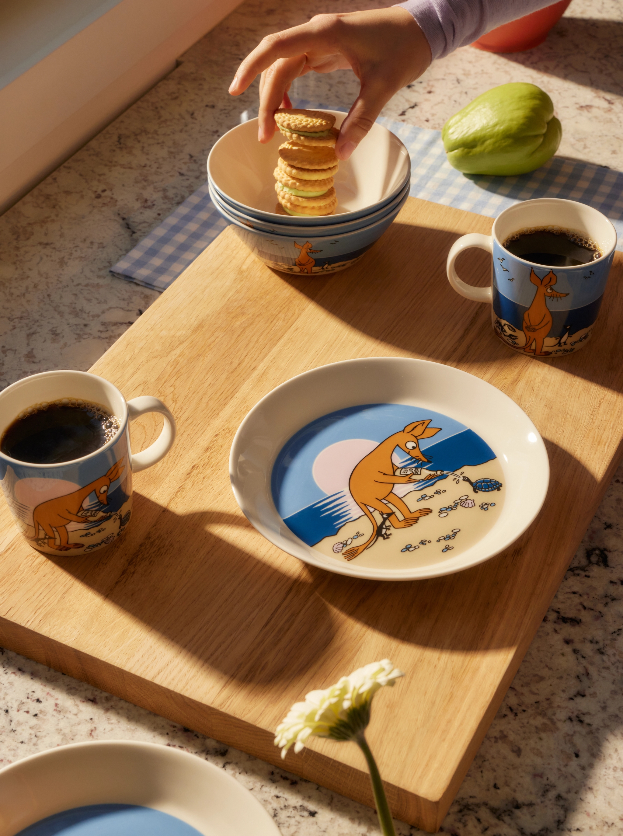 I Moomin by Arabias klassikerkollektion släpps nu två nya motiv: den stora drömmaren Sniff och den filosofiska Bisamråttan. Sniff är ett bekant ansikte i kollektionen men Bisamråttan dyker nu upp för första gången i en servis.