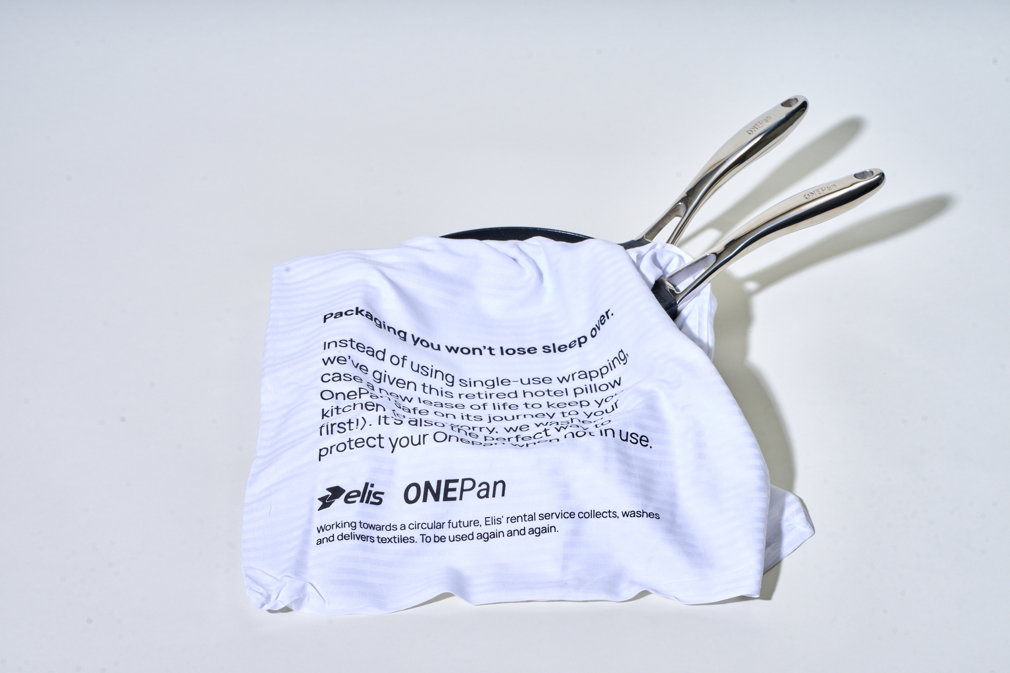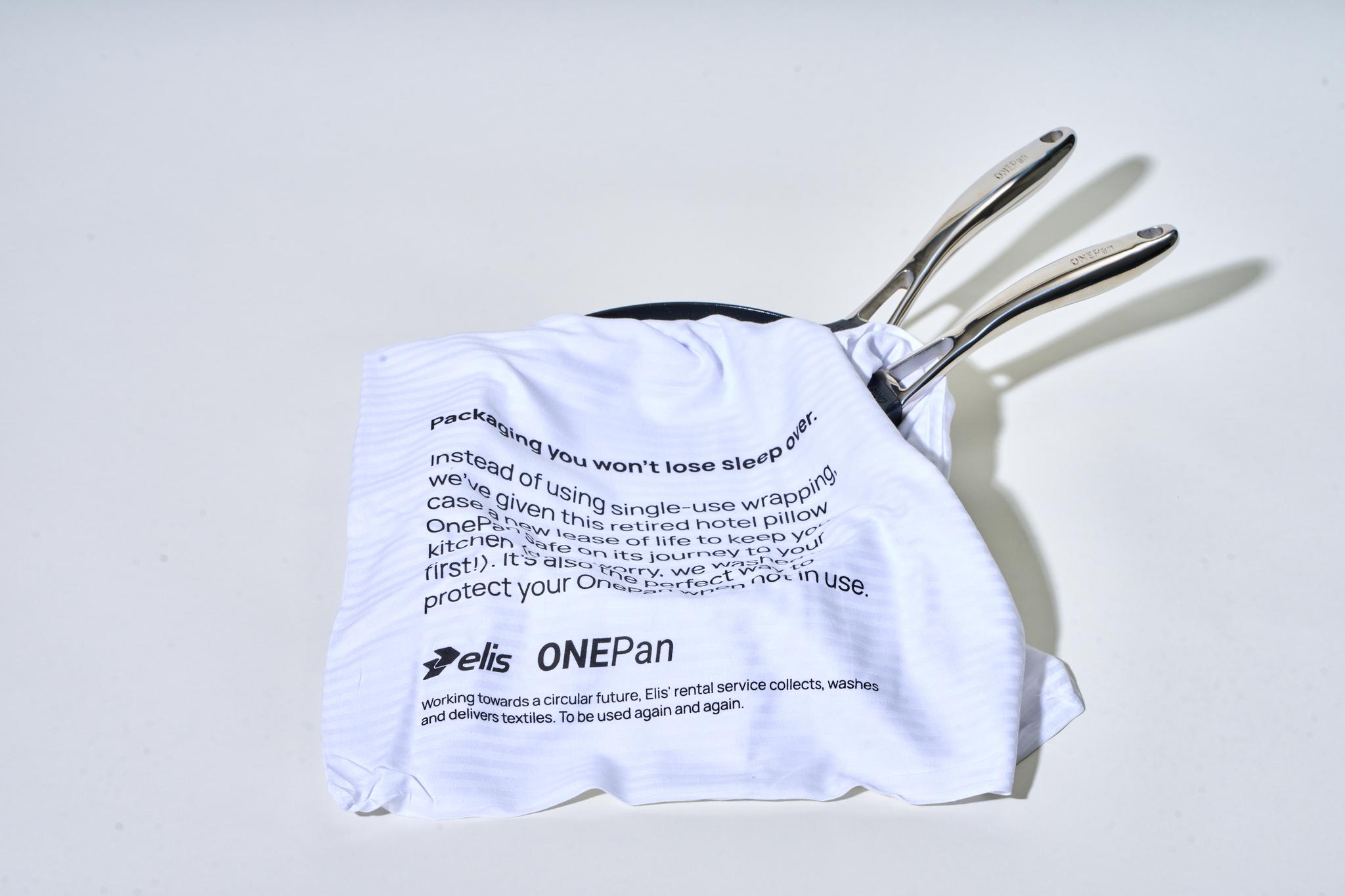 I dagens slit-och-släng-samhälle är det vanligt att köksredskap, särskilt de med non-stick-beläggning, kasseras vid första tecknet på slitage. OnePan utmanar denna trend med produkter du investerar i en gång och sedan när beläggningen slits bevaras allt värdefullt material och toppskiktet målas om till glänsande nyskick. Varje OnePan stekpanna anländer snyggt förpackad i en textilpåse som tidigare varit ett hotellörngott.