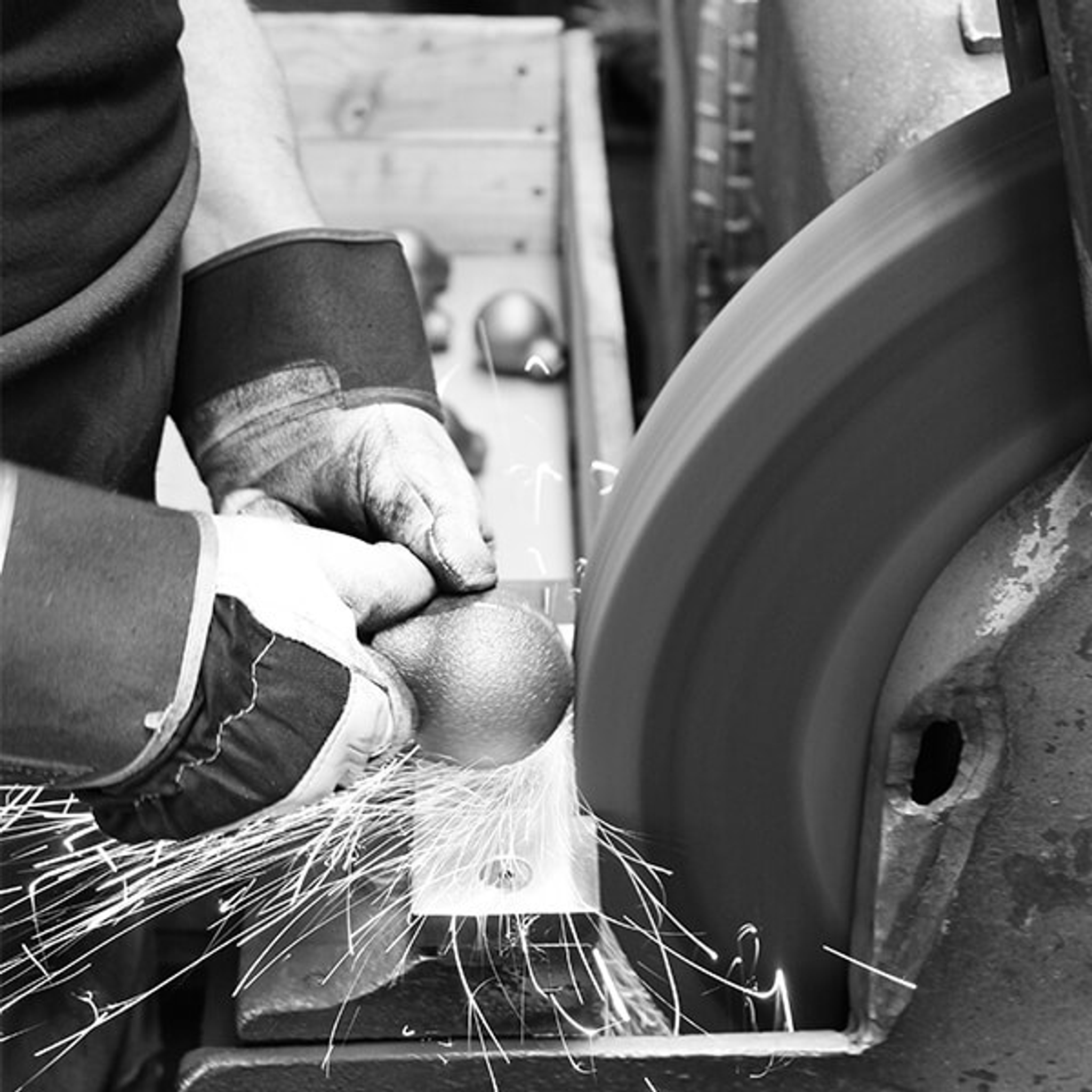 Vid varje arbetsstation i gjuteriet synas gjutgodset för att säkerställa att de lever upp till Skeppshults höga kvalitetsstandard. De produkter som bedöms undermåliga sorteras ut och återvinns i nästa gjutjärnssmälta så de kan bli nya produkter.