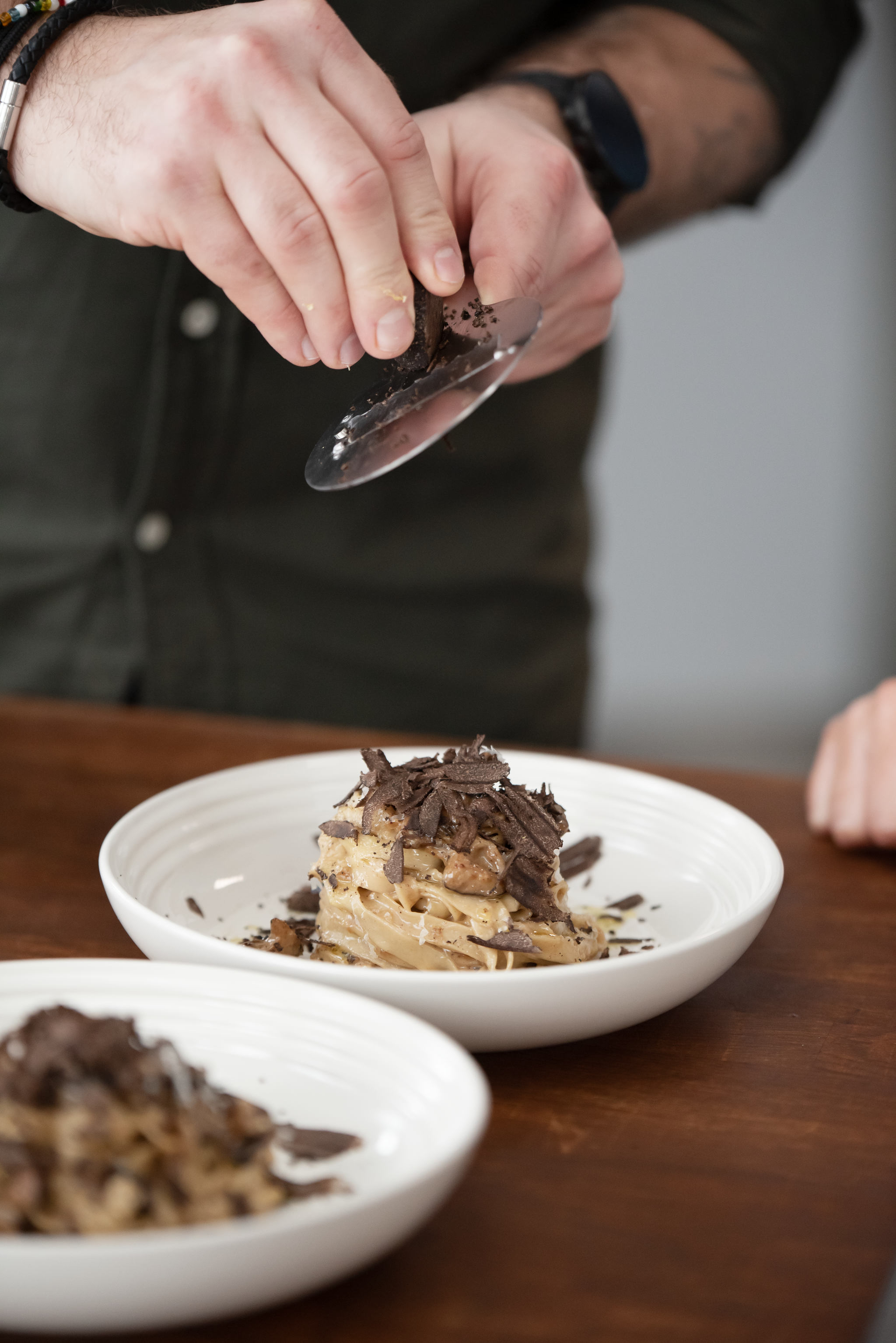 - För att få den perfekta pastatallriken vill du att såsen ska liera sig med pastan, alltså gå ihop. Det gör du genom att låta pastan koka klart i själva såsen medan du rör om. Använd pastavattnet för att justera konsistensen. Sen går du i med ost och får den krämigaste pastan i mannaminne.