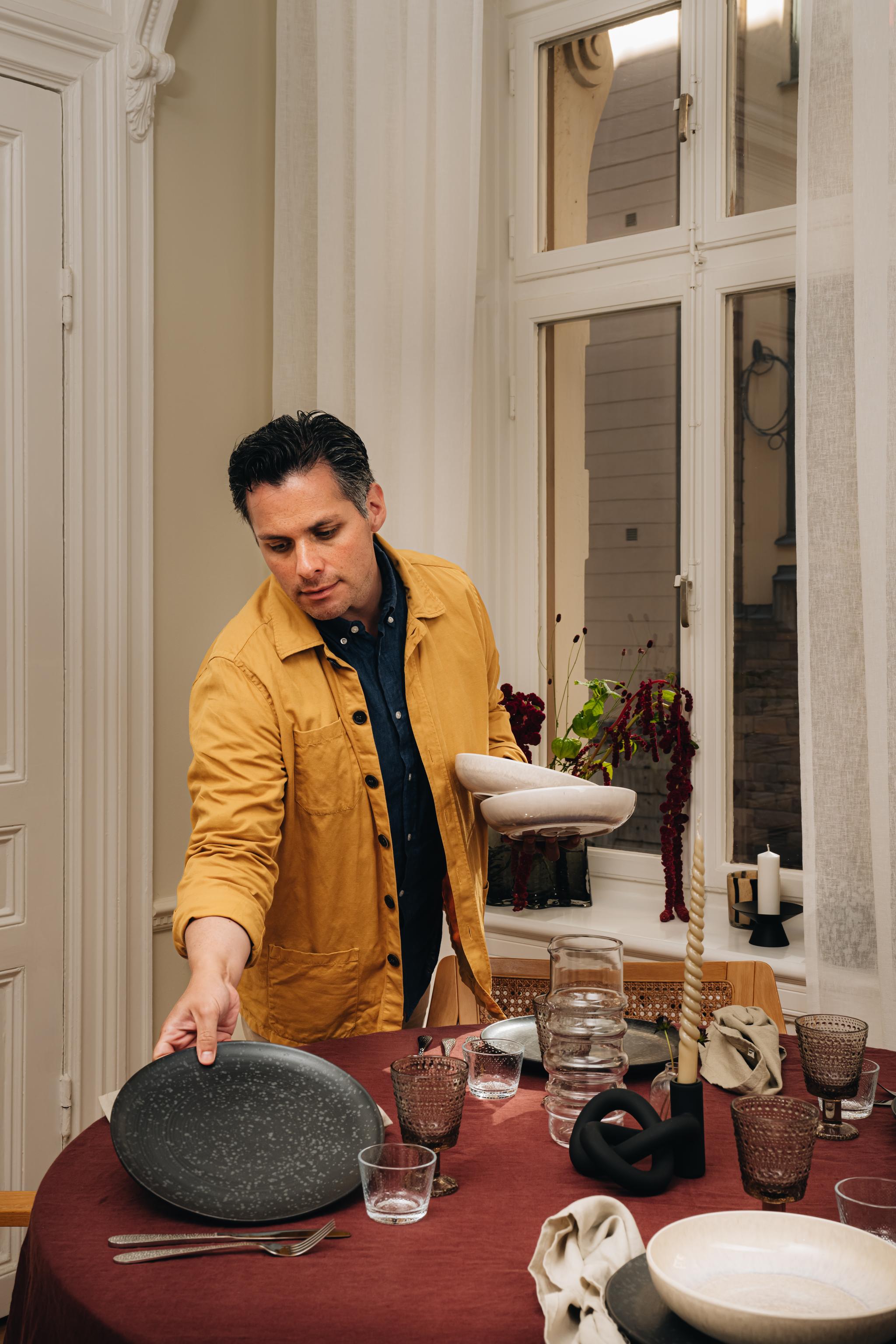 Det är även nu som vi ser att färgskalan på det dukade bordet skiftar. Vi lämnar nätt och småblommigt bakom oss för att göra plats åt en mer mustig och dov färgskala. Vinrött tar för sig på bordet tillsammans med mörkt, nästintill svart, porslin som vi missmatchar och bryter av mot mer organiska färger. En av de största trenderna är färgat glas - som verkligen är något som vi kommer ser mycket av i höst, och gärna glas på fot. Glöm inte att sätta stämningen med ljus, mjuka textilier och dramatiska snittblommor som lyfter din höstdukning till nya nivåer!
