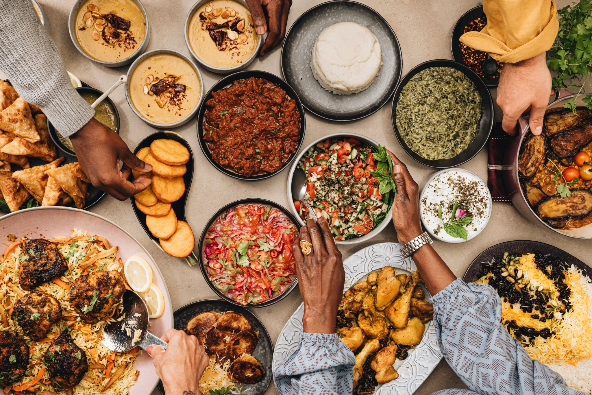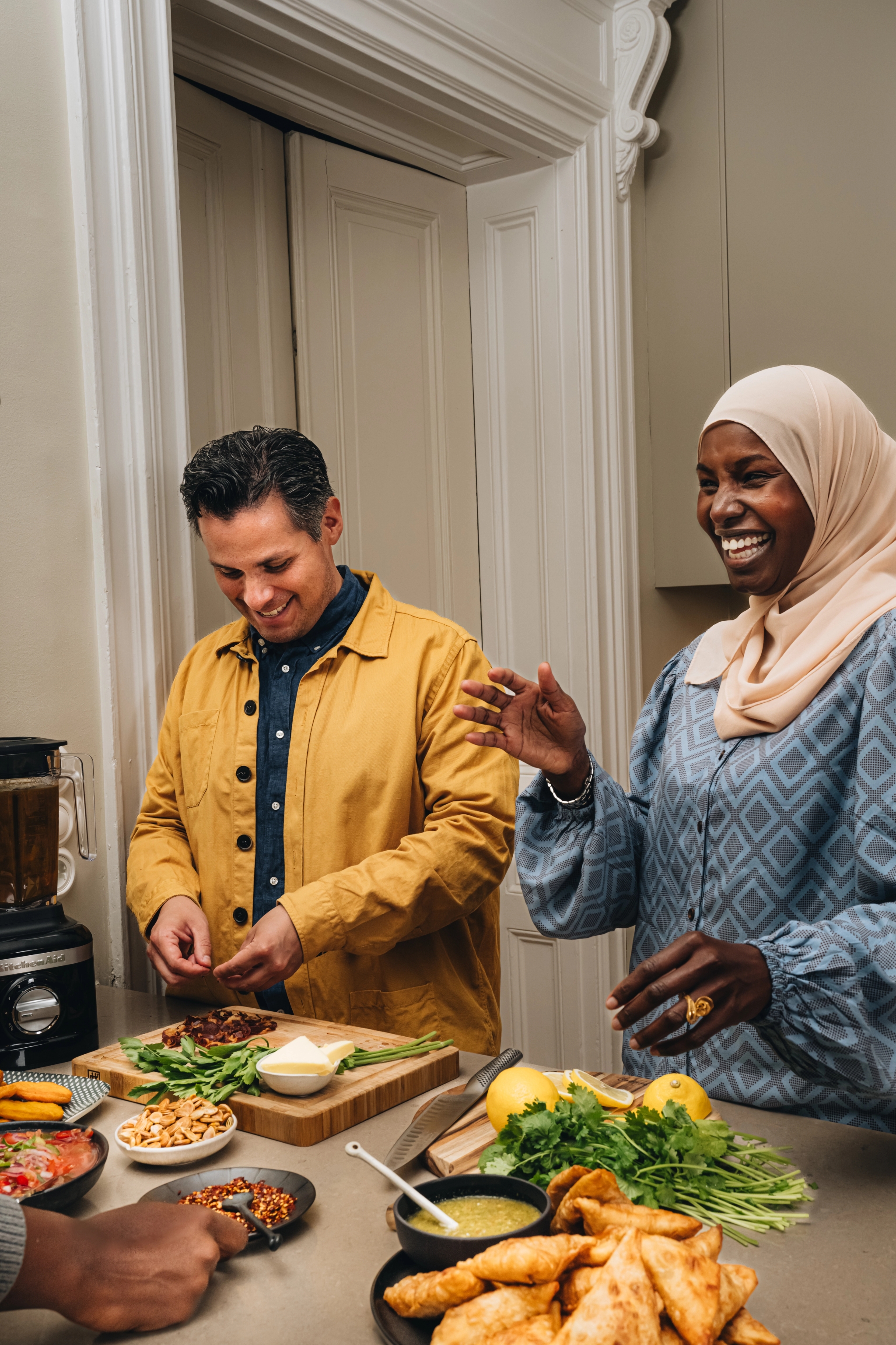 Khadija, som är mästarinna på det afrikanska köket, har bjudit in vännerna Mikael Wallentin Åström, Abel Kipaso och Elahe Rouhdoust för att tillsammans duka upp till en matfest som heter duga - där chilenskt möter persiskt i en spännande smakexplosion. På menyn står bland annat somaliska piroger, en klassisk tanzaniskt paradrätt, ett persiskt färgspel till ris och friterat pumpabröd från Chile.