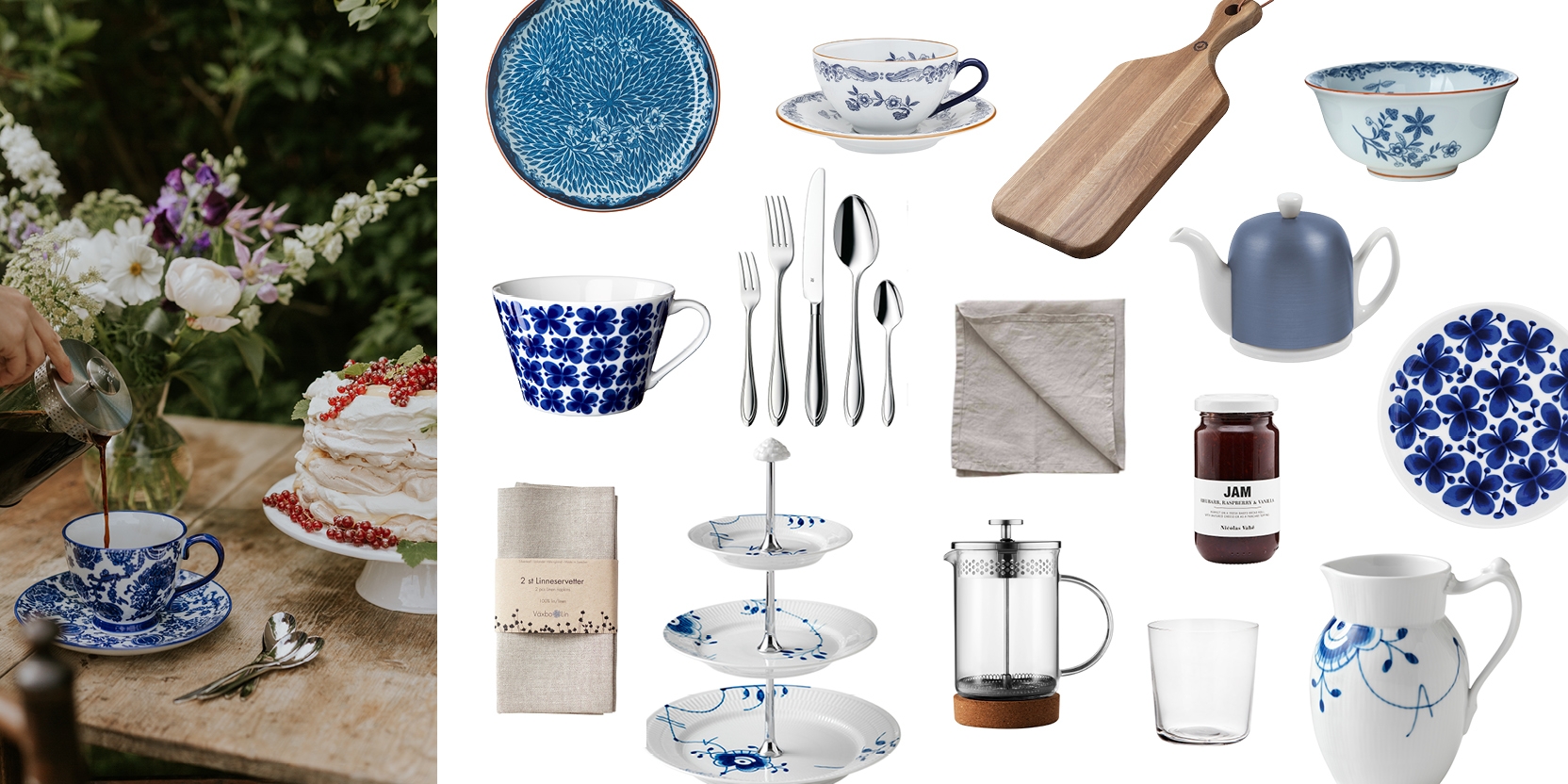 Vad är inte mer en svensk sommar än det blå-vita porslinet? Duka upp till en klassisk romantisk table setting där du arbetar in naturmaterial som linne och trä, exempelvis i dukar och servetter. Vad sägs om att servera nybakade kanelbullar direkt på en fin skärbräda? Och när du vill slå på stort - bjud på en somrig jordgubbstårta som sticker ut med sin röda accent till det blåvita. Hur sommardrömmigt?