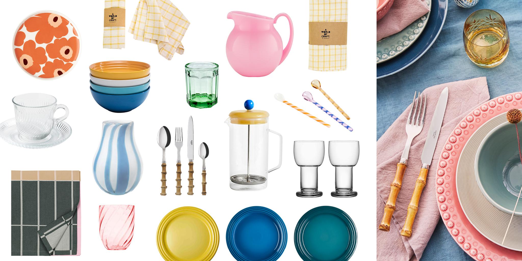 Är du den som snarare tycker om att överraska och skapa någonting oväntat? Då är den poppiga grafiska dukningen någonting för dig! Här glömmer vi allt som heter tidlöst och klassiskt och satsar alla kort i stället på knalliga färger, grafiska linjer och mönstrat där 80- och 90-talen inspirerar oss till att ta fram allt det där som vi länge haft lite undangömt. Exempelvis olika typer av chunky glas på fot, överraskande bambubestick, storrutigt och djärva skarpa färgkombinationer. Här kommer din dukning verkligen bli ett samtalsämne i sig under middagen!