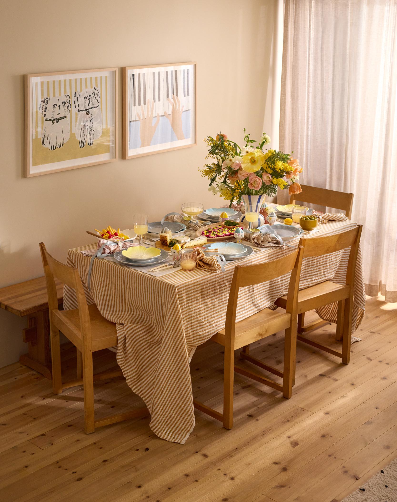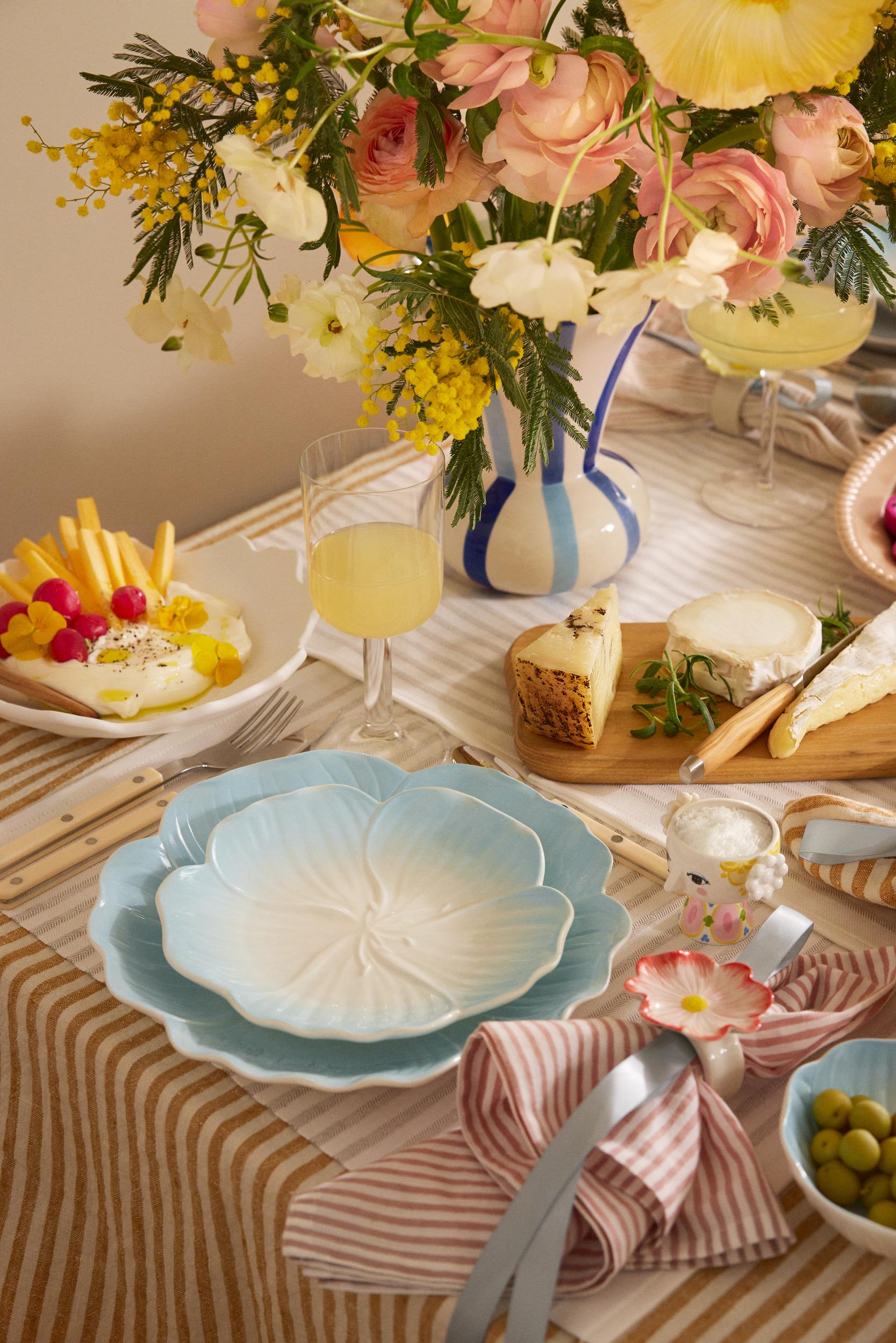 Flora består av en mattallrik 25 cm, en assiett 17 cm, en skål 14 cm, en skål 11,5 cm, en servettring samt en ljusstake. Serien finns i gul, blå samt vit och säljs på cervera.se och i alla våra butiker.