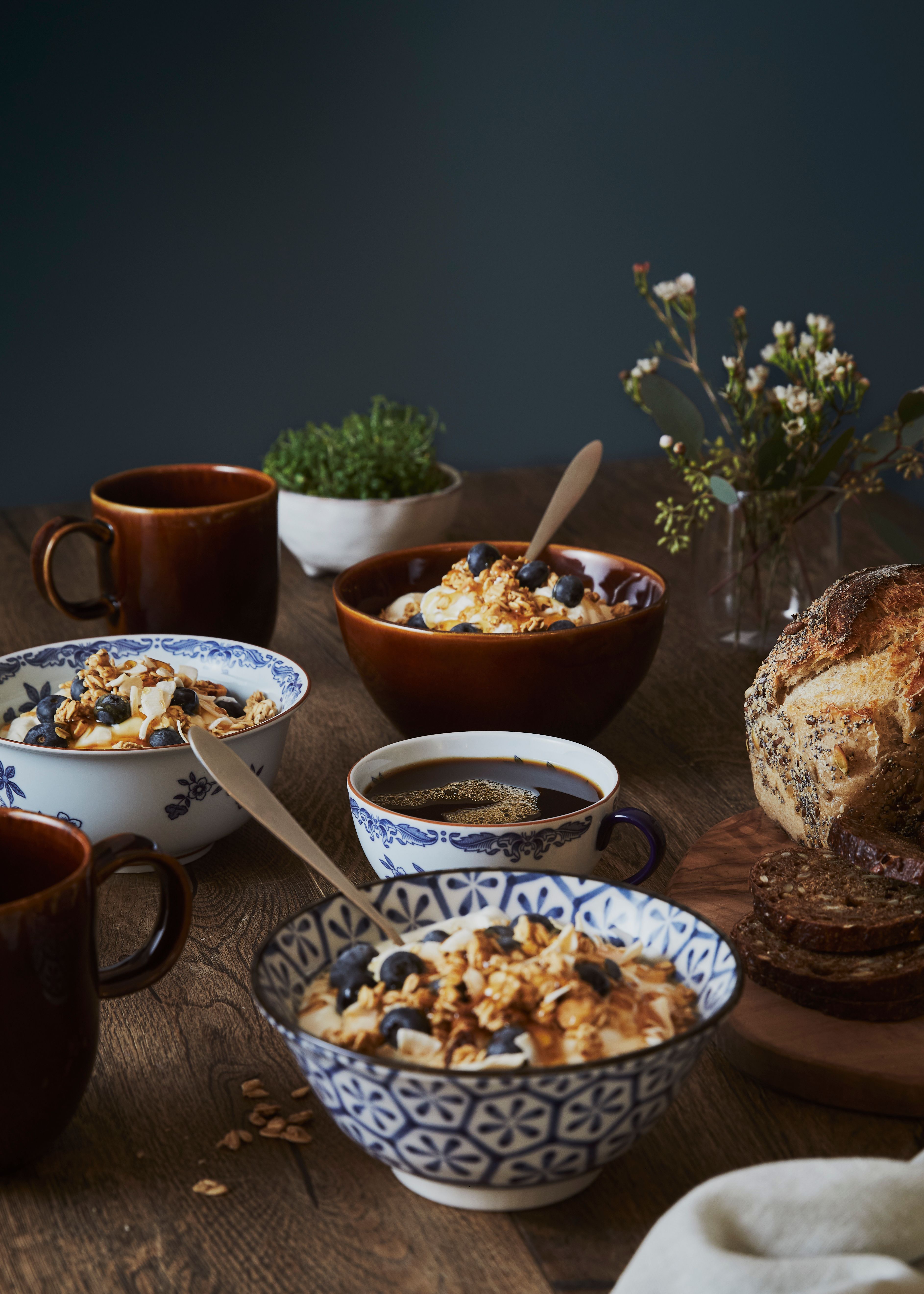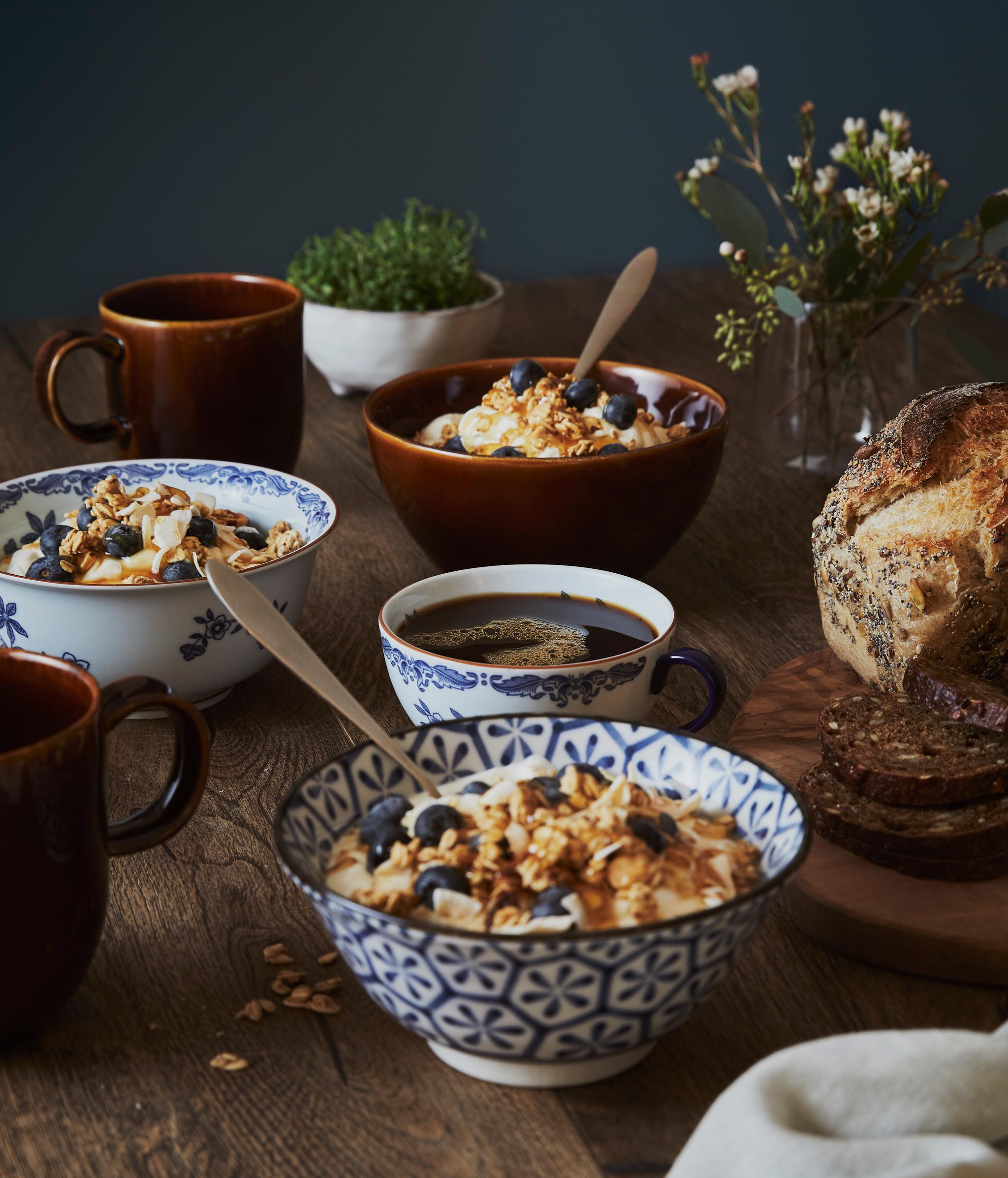 Är du frukosttypen som gärna står i timmar och förbereder stora och lyxiga frukostar – sådana där riktiga hotellfrukostar?! På din meny står kanske både gröt, yoghurt toppad med olika müslis, frukt och nötter. Du skär gladeligen upp lyxigt och generöst med fräsch frukt, pressar din egen juice och kanske pocherar ägg? Dukningen är minst lika viktig som det du serverar på frukostbordet, och det ska gärna både matcha men missmatcha på det där perfekta sättet.