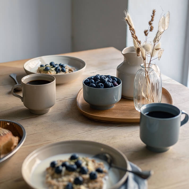 Det här är stilen för dig som tycker om raka och avskalade linjer – som tycker att den skandinaviska minimalismen är det snyggaste som finns. Du tycker om att duka med jordnära pasteller som går ton i ton, där ”krimskramset” gärna får utebli. Du stylar gärna med en liten kvist på bordet som en symbol för naturen som ger ett lugnande intryck på just - morgonKVISTEN. Dessutom tycker du om rena och naturliga smaker på bordet som gärna får vara återkommande. En müsli med färska blåbär är ett säkert kort och vinnande koncept varje gång till exempel!