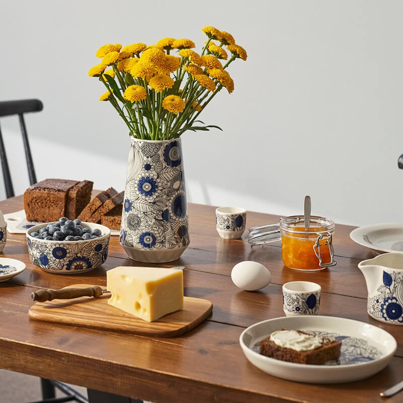 Är du ett stort fan av skandinavisk design med sitt karakteristiskt grafiska mönster? Då är det här frukoststilen för dig – där finska favoriter från Marimekko och Arabia sätter tonaliteten. Du dukar gärna upp med benporslin som är lekfullt mönstrat och som avspeglar både din personlighet och stil. Därför tycker du troligtvis om att styla ditt dukade frukostbord med blommor i starka färger och livsmedel likaså – och ser gärna accenter mot skandinaviskt trä och andra tidlösa och klassiska detaljer.