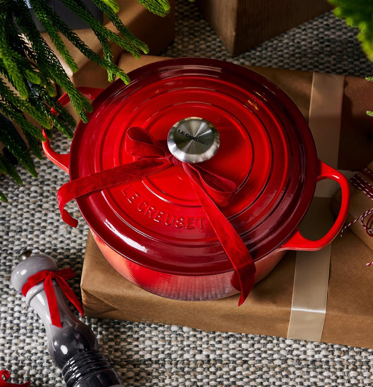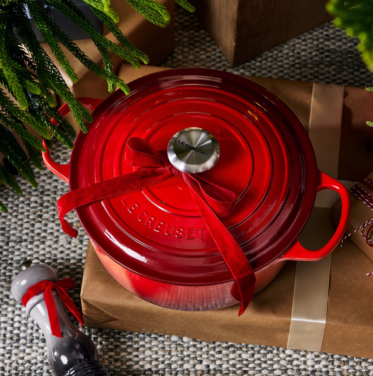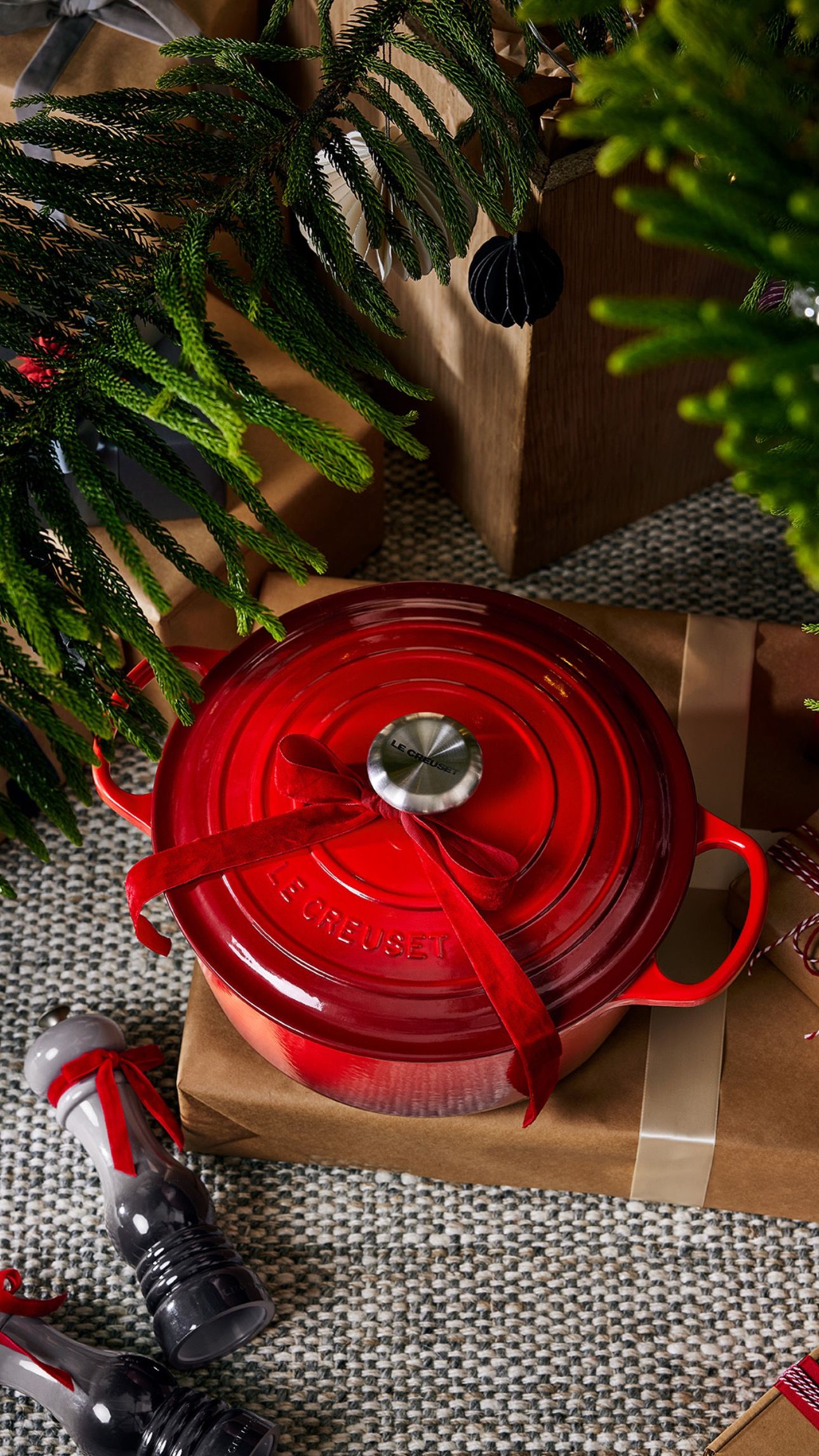 "En Le Creuset-gjutjärnsgryta är perfekt för långkok. Den har en jämn värmefördelning vilket ger enastående smak och konsistens i maten. Dess slitstarka emalj gör den lätt att rengöra och hållbar att användas i generationer."