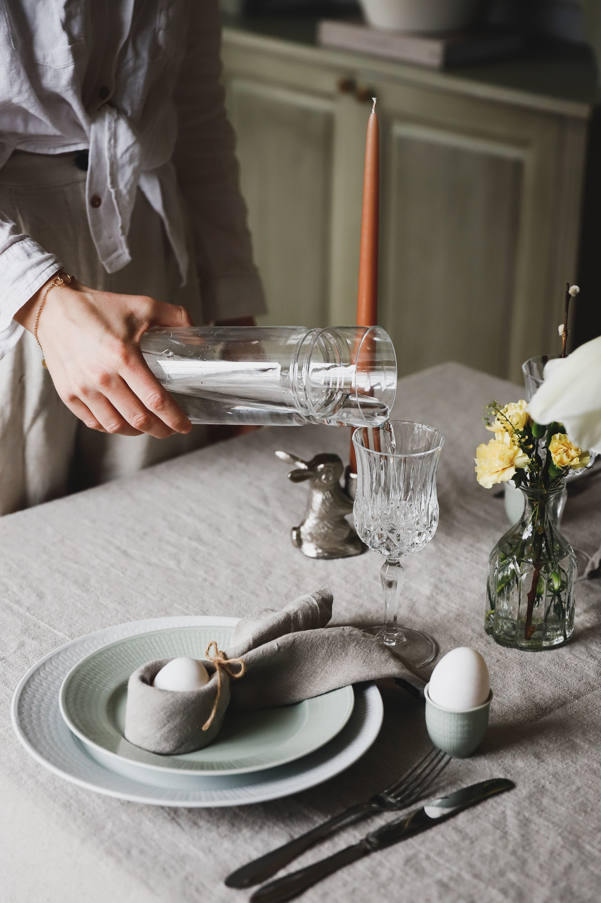 Är inte all in på färgen din grej? Då är säsongens lugna färgskala kanske mer i din smak? Testa gärna att kombinera lugna färger som går ton i ton och kanske addera små element som signalerar att det är påsk - en stilren äggömma exempelvis.