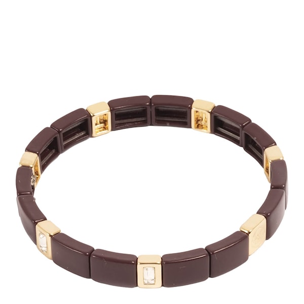 Låt Enamel Tiles Crystal Line-armbandet i burgundy och guld från A&C Oslo ge en djup och elegant ton till din outfit. Den vinröda emaljen i kombination med kristaller och gulddetaljer skapar ett smycke med sofistikerad närvaro.