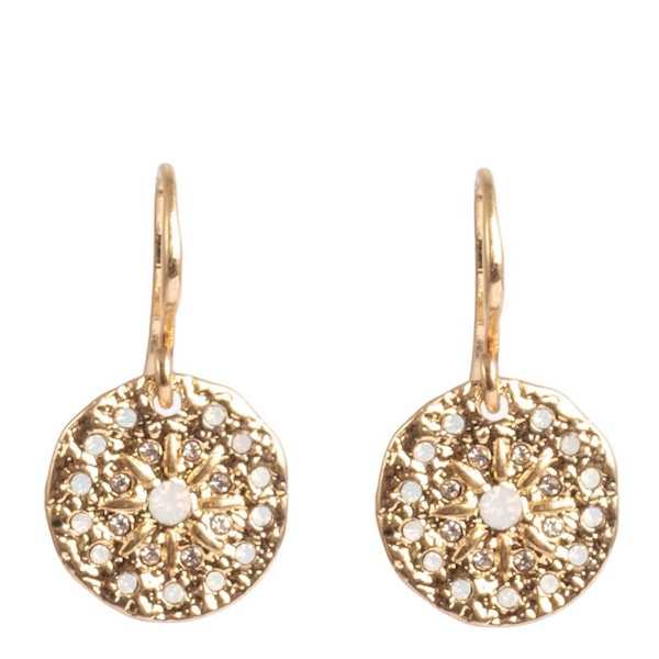 Basen består av mässing med plätering i äkta guld, dekorerad med en vit opalsten och klara kristallstenar som reflekterar ljuset. Krokdesignen gör dem enkla att ta på och ger ett elegant fall. Smyckena är helt nickelfria.