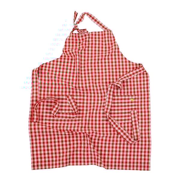 Maria förkläde 70x82 cm i röd/natur från A world of craft kombinerar funktion med form. Det är tillverkat i stadig handvävd bomull, med två fickor framtill och justerbart band i nacken.