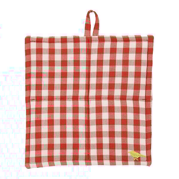 Maria grytlapp 21x21 cm i röd/natur från A world of craft är ett praktiskt och snyggt kökstillbehör. Den handvävda ekologiska bomullen skyddar effektivt vid hantering av varma kastruller.