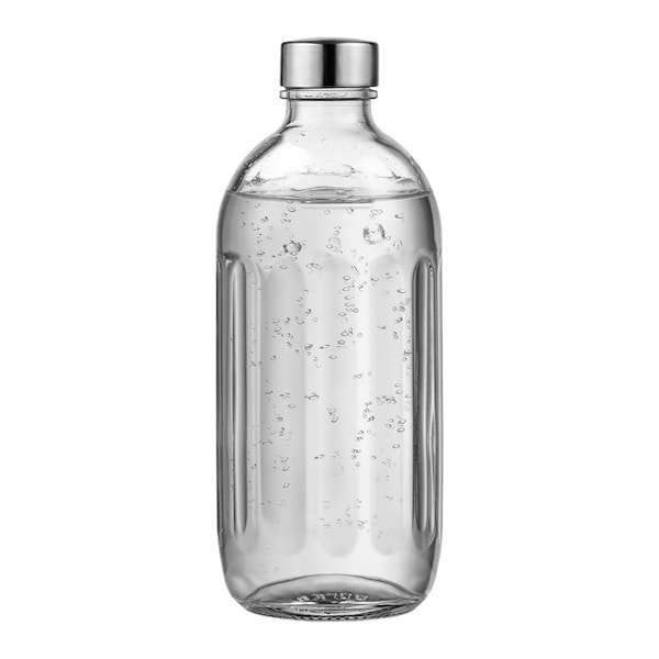 En stilren vattenflaska i glas till Aarke Carbonator Pro. Aarke har tagit fram en extra flaska till sin senaste premiumkolsyremaskin, tillverkad i glas, med metallkork och som tål diskmaskin - för att minimera användandet av plast. Flaskan rymmer 80 cl (70 cl till markeringslinjen) och har en enkel och minimalistisk stil som är snygg att ställa fram på bordet.