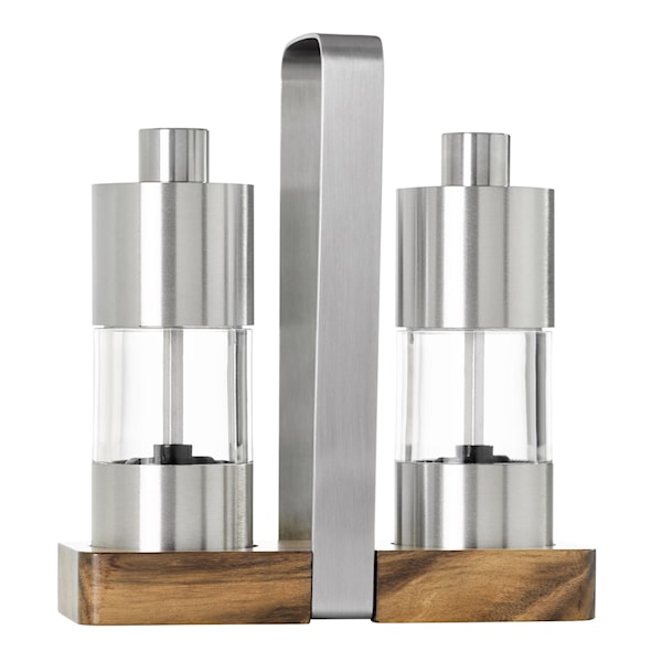 Set Salt och pepparkvarn från AdHoc med stativ. Justerbar från fin till grov.