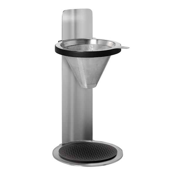 Med denna kaffebryggare från AdHoc kan du göra kaffe utan filterpapper. Justerbar höjd så att du kan använda den kolv du vill ha nedan. Filtret ställs in i rätt läge med hjälp av en magnet.