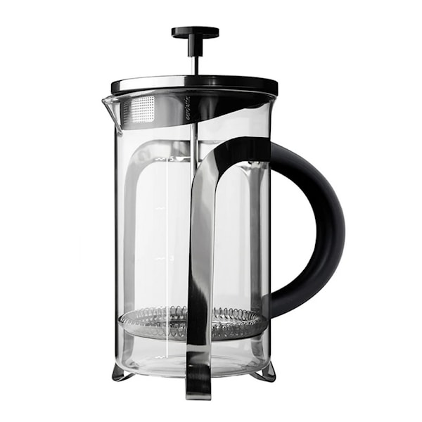 Aerolattes presskanna i svart, designad för att brygga upp till 5 koppar kaffe, kombinerar modern stil med traditionell funktionalitet. Glaskannan har en tydlig mätskala som säkerställer precis bryggning, och ett extra mikrofiltret i pipen effektivt tar bort kaffesump för en ren kaffeupplevelse. Kannan är enkel att ta av och kan diskas i diskmaskin, och en praktisk måttsked ingår för enkel dosering. Utbytbara filter och glaskannor finns tillgängliga, vilket gör denna presskanna till ett hållbart och praktiskt val för kaffeälskare.