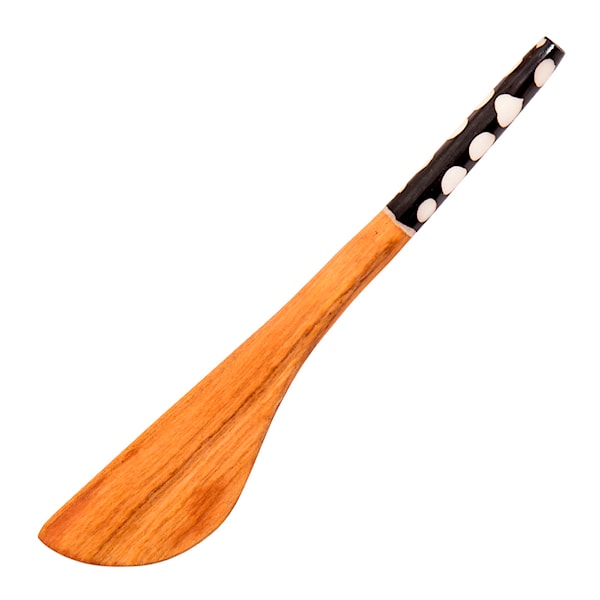 Handgjord smörkniv i olivträd från A World of Craft. Denna fina smörkniv är dekorerad med ett fint prickigt mönster. Kniven är handgjord och tillverkad i Kenya av en mindre grupp hantverkare.