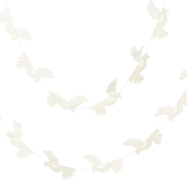 Dekorera ditt hem med denna vackra girlang från A World of Craft. Vita flygande duvor ger en romantisk och harmonisk känsla i ditt hem. Funkar fint både vertikalt och horisontellt, vacker i fönstret och på bordet som en slingrig utsmyckning. Tillverkad på Nepals sluttningar av busken Daphne Cannabina, lokalt kallad Lokta. Nepal är känt för sin handpapperstillverkning och där finns en lång tradition i detta hantverk.