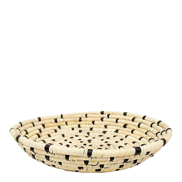 Handflätad korg från A World of Craft, tillverkad i Bangladesh. Korgen är gjord av lokalt växande palmblad och tillverkad av kvinnor på landsbygden. En stabil fin korg, perfekt till frukostfrallorna och dekorativ med sina svarta inslag på ditt köksbord.