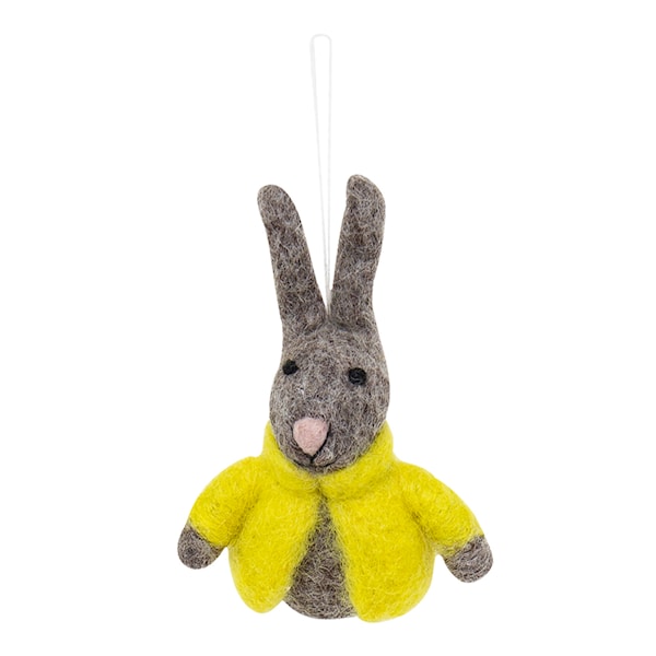 Påsk Hänge Kanin Gul Rock från A World of Craft är ett handtovat påskhänge, tillverkat med s k nålfiltning. Den lilla kaninen kommer att göra sig fint i ditt påskris eller att fästas på en påskpresent som exrta dekoration.