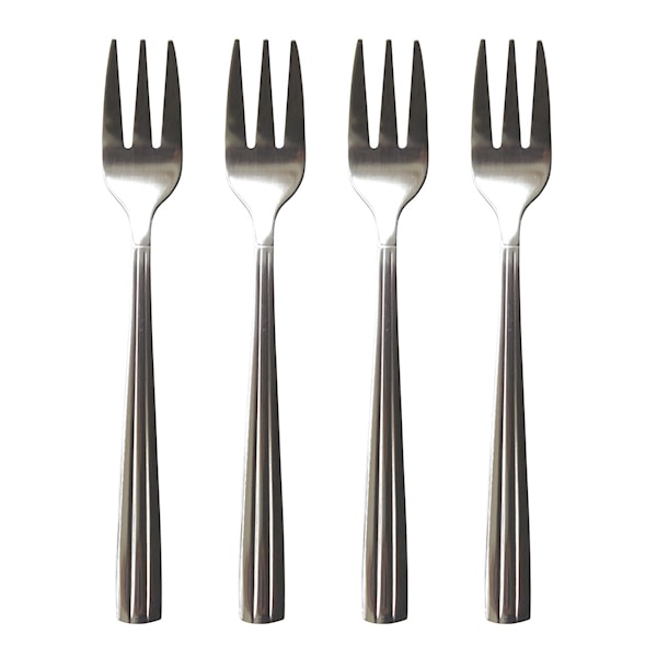 Fyra Groovy tårtgafflar i polerat rostfritt stål från Aida. Dessa gafflar är en del av den stilfulla Groovy-serien, som kombinerar ett klassiskt formspråk med en distinkt räfflad design. Med sin moderna och tidlösa look i glänsande rostfritt stål erbjuder kakgafflarna en elegant finish och hållbarhet. De är diskmaskinsvänliga, vilket gör dem både praktiska och enkla att rengöra.