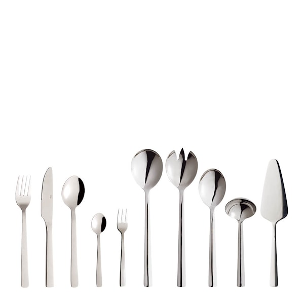 Ge dukningen ett lyft med Aida RAW bestickset, 65 delar, i spegelpolerat rostfritt stål. Den släta, blanka ytan reflekterar ljuset och ger bordet en exklusiv och sofistikerad karaktär vid alla tillfällen. Besticket är tillverkat i slitstarkt rostfritt stål som tål maskindisk och är gjort för att hålla i många år.