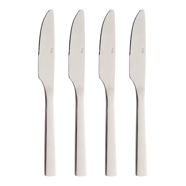 Matkniv 4-pack från Aida. Passar både vardags som fest. Besticken har ett rått och enkelt uttryck, som är som skapat för den nordiska dukningen. I samarbete med Christiane Schaumburg-Müller. Setet finns i tre olika färger: svart, silver, guld. Komplettera gärna med andra delar ur Aida Raw.