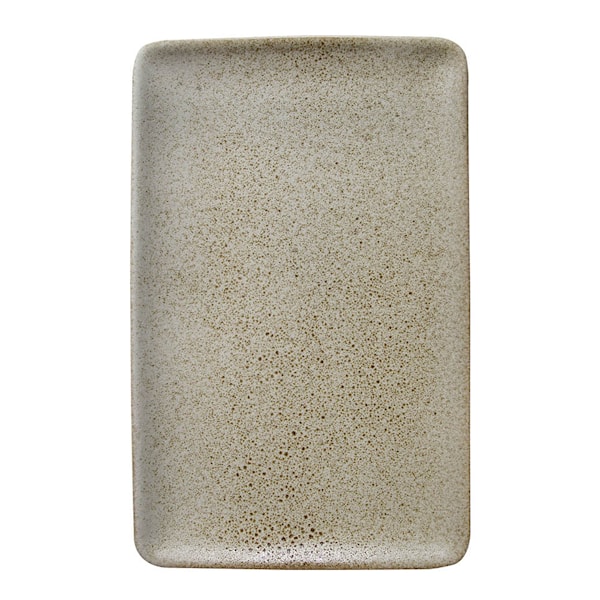 Rektangulär tallrik i stengods som passar för uppläggning av till exempel sushi eller snittar.