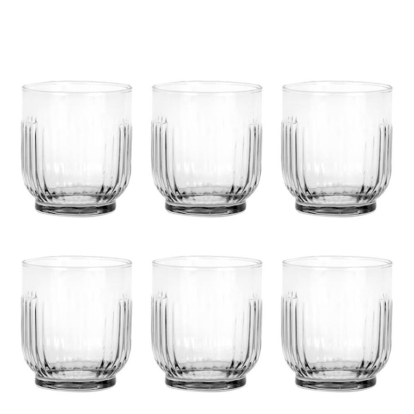 Ge dukningen en tidlös känsla med detta set med sex vattenglas från Aida. Med en kapacitet på 33 cl och en elegant räfflad design kombinerar glasen funktionalitet med estetik. Det minimalistiska uttrycket gör dem till ett mångsidigt val som passar lika bra till vardagen som till mer formella tillfällen.