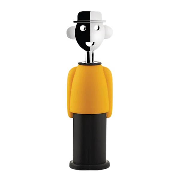 Alessandro M korkskruv gul/svart från Alessi, formgiven av den kända Alessandro Mendini. Denna korkskruv, med en höjd på 21 cm, är tillverkad av termoplastisk resin i en elegant gul- och svart färgkombination samt förkromad zamak. En stilren och praktisk detalj som gör varje vinöppning till en exklusiv upplevelse.
