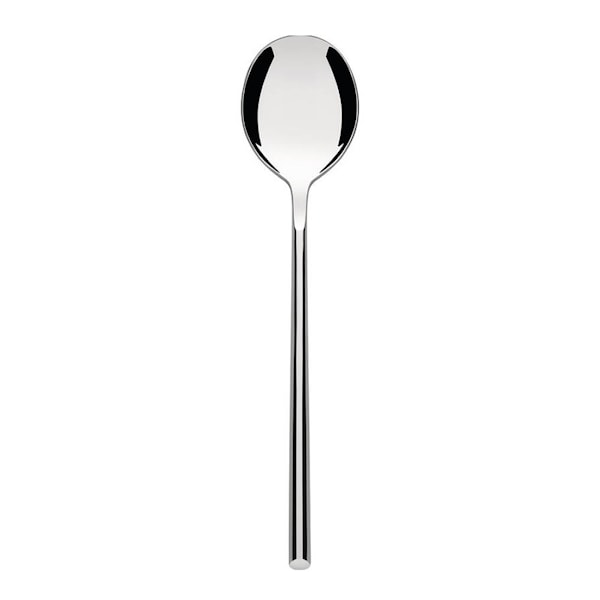 Alessi Clivo matsked 19,7 cm i rostfritt stål är ett uttryck för förfinad italiensk design. Serien Clivo har utvecklats i nära samarbete mellan designer och modellbyggare och bygger på manuella tekniker där formerna skurits fram med stor precision. Resultatet är en sked med genomtänkt balans och en distinkt, skulptural siluett.
