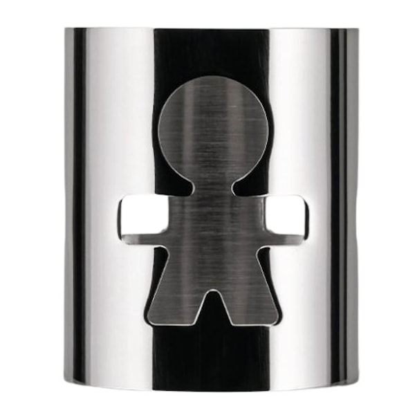 Alessi Girotondo servettring 5 cm herr är en dekorativ servettring i 18/10 rostfritt stål med det ikoniska utskurna kvinnomotivet. Designen är skapad av King-Kong (Stefano Giovannoni och Guido Venturini) och är ett tydligt exempel på Alessis lekfulla och tidlösa formspråk. Den ger dukningen en personlig och grafisk detalj som passar både vardag och fest.