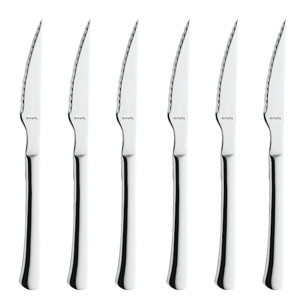 Detta bestickset med 6 st Chuletero grillknivar från Amefa är ett klassiskt och praktiskt tillskott till köket. Tillverkade i rostfritt stål med ett stilrent uttryck.