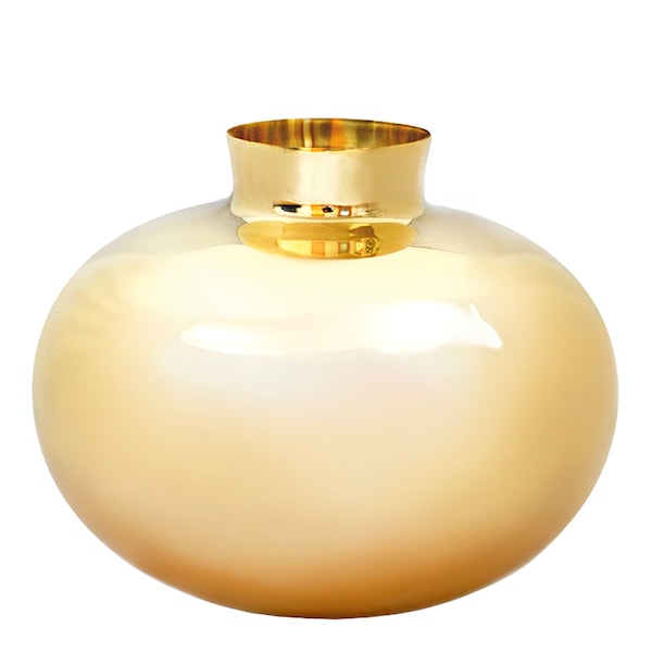 Stor vas ur serien Amico, tillverkad av blankpolerad mässing eller förnicklad mässing. Vasen har en hals som formar buketten. Matcha gärna vasen med andra vaser i samma serie.