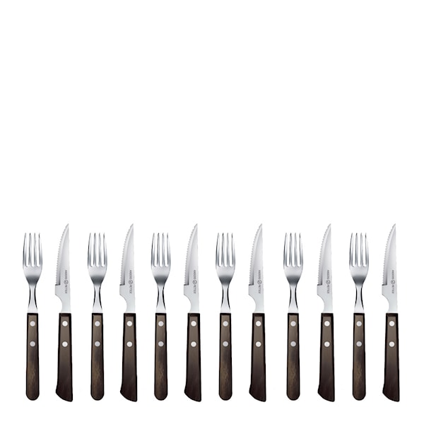 Anders Petter Classic grillbestick 12 delar i färgerna brun och blank är det perfekta valet för alla tillfällen, oavsett om det är en mysig vardagsmiddag eller en festlig tillställning. Dessa bestick är tillverkade av högkvalitativt 18/0 rostfritt stål med handtag av Polywood, vilket ger en kombination av skönhet, robusthet och praktisk användning. Du kan enkelt diska dessa bestick i diskmaskinen utan problem.